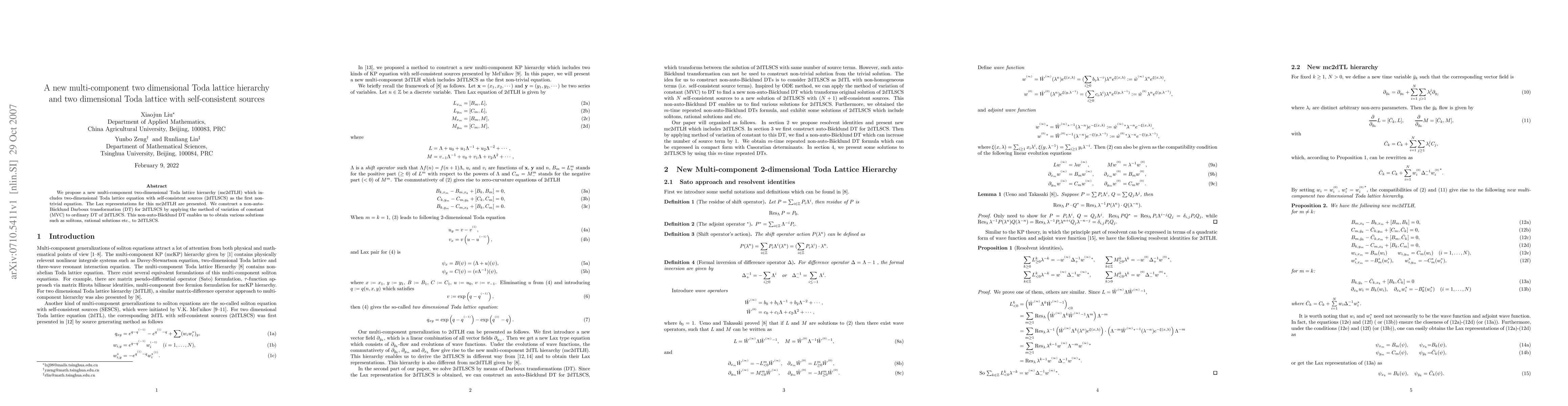 This paper introduces a new multi-component two-dimensional Toda lattice hierarchy (mc2dTLH) featuring the two-dimensional Toda lattice with self-consistent sources (2dTLSCS) as its first non-trivial equation. A non-auto-Bäcklund Darboux transformation is constructed to generate solutions including solitons and rational solutions for 2dTLSCS.