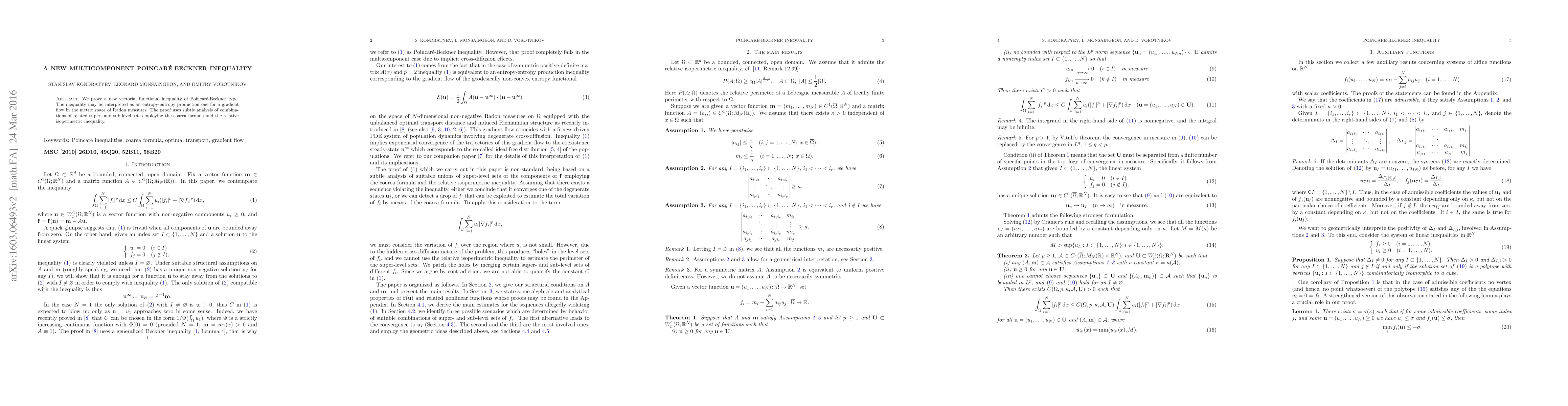 This paper establishes a novel multicomponent Poincaré-Beckner inequality applicable to gradient flows in the space of Radon measures. The proof intricately utilizes the coarea formula and relative isoperimetric inequality to analyze super- and sub-level sets.