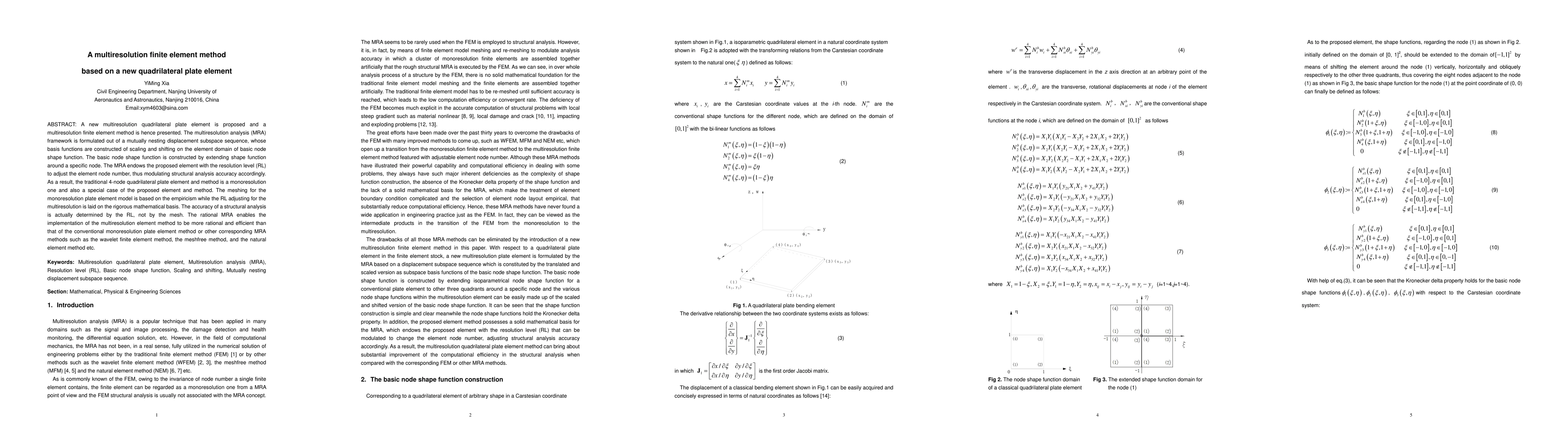 This paper introduces a new multiresolution finite element method based on a quadrilateral plate element, utilizing a multiresolution analysis framework to adjust resolution levels for enhanced structural analysis accuracy. Unlike traditional monoresolution methods, this approach allows for more rational and efficient analysis by dynamically adjusting the element node number based on a rigorous mathematical basis.