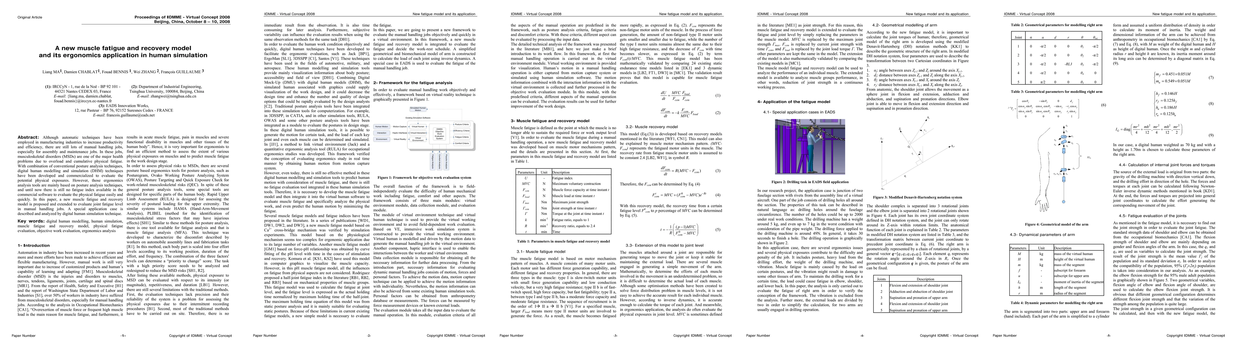 This paper proposes a new muscle fatigue and recovery model to evaluate joint fatigue levels in manual handling jobs, extending digital human modeling and simulation techniques. It aims to address the lack of fatigue indices in ergonomics analysis tools, providing a practical application in human simulation for assessing musculoskeletal disorders.
