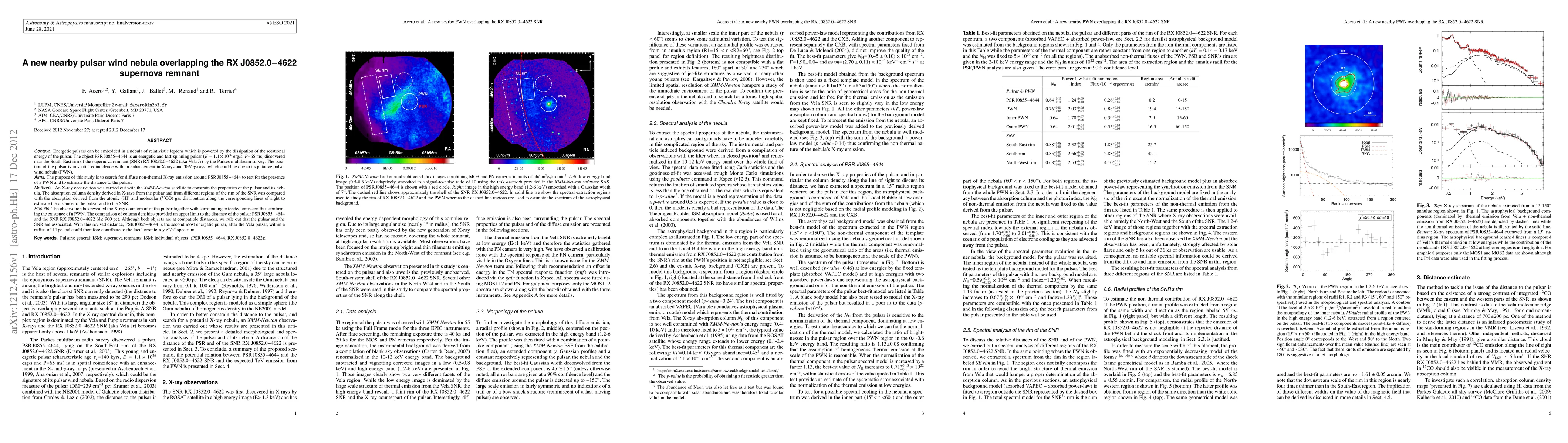 This study confirms the existence of a pulsar wind nebula (PWN) around the energetic pulsar PSR J0855-4644, discovered near the supernova remnant RX J0852.0-4622. XMM-Newton observations reveal extended X-ray emission, confirming the PWN, and suggest both objects are at a distance less than 900 pc, though not associated.