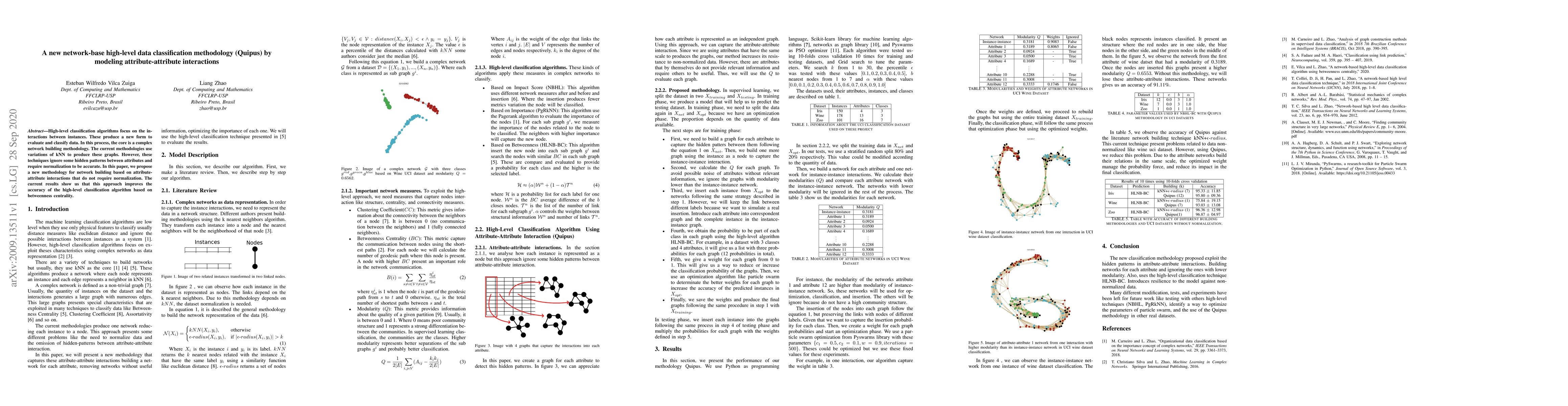 This paper introduces a novel network-based high-level data classification methodology called Quipus that models attribute-attribute interactions without requiring normalization. The proposed approach improves classification accuracy compared to existing kNN-based techniques.