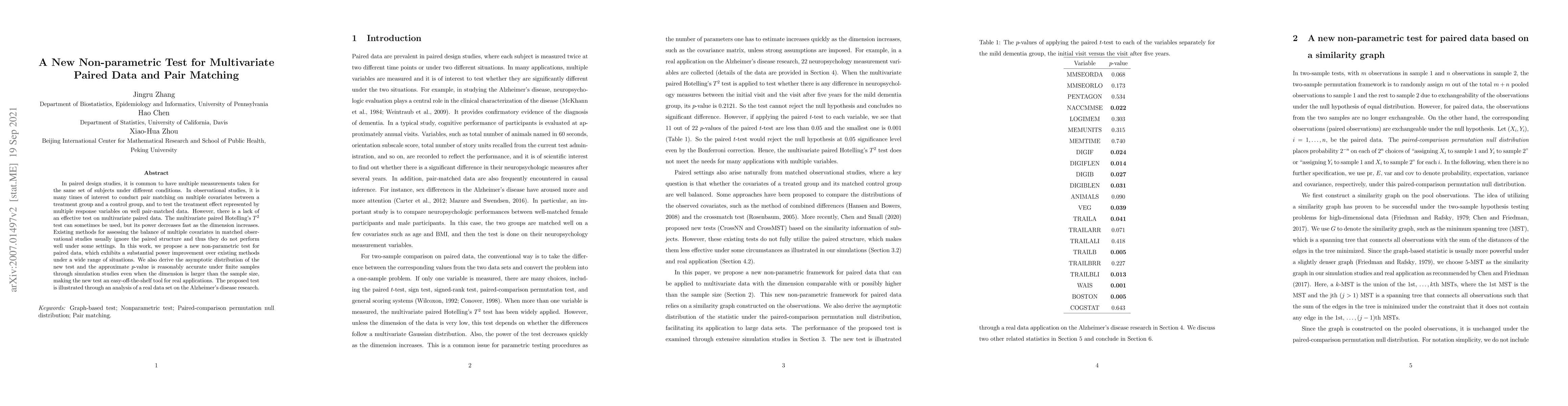 In paired design studies, it is common to have multiple measurements taken for the same set of subjects under different conditions. In observational studies, it is many times of interest to conduct pair matching on multiple covariates between a treatment group and a control group, and to test the treatment effect represented by multiple response variables on well pair-matched data. However, there is a lack of an effective test on multivariate paired data. The multivariate paired Hotelling's $T^2$ test can sometimes be used, but its power decreases fast as the dimension increases. Existing methods for assessing the balance of multiple covariates in matched observational studies usually ignore the paired structure and thus they do not perform well under some settings. In this work, we propose a new non-parametric test for paired data, which exhibits a substantial power improvement over existing methods under a wide range of situations. We also derive the asymptotic distribution of the new test and the approximate $p$-value is reasonably accurate under finite samples through simulation studies even when the dimension is larger than the sample size, making the new test an easy-off-the-shelf tool for real applications. The proposed test is illustrated through an analysis of a real data set on the Alzheimer's disease research.