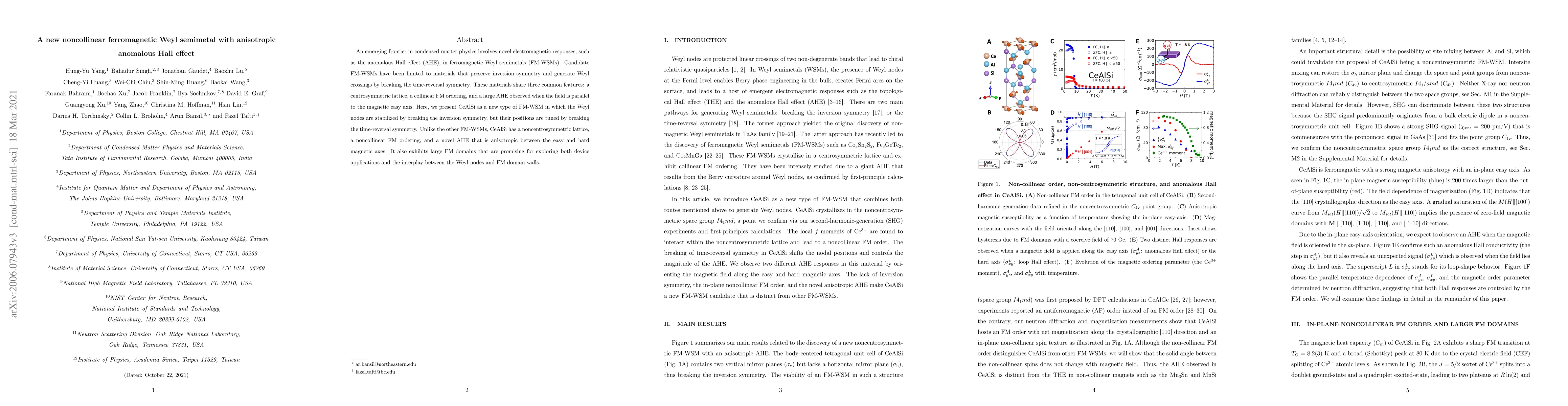 Researchers discovered a new type of ferromagnetic Weyl semimetal called CeAlSi with a noncollinear magnetic ordering and anisotropic anomalous Hall effect, offering potential for device applications and studying the interplay between Weyl nodes and domain walls.