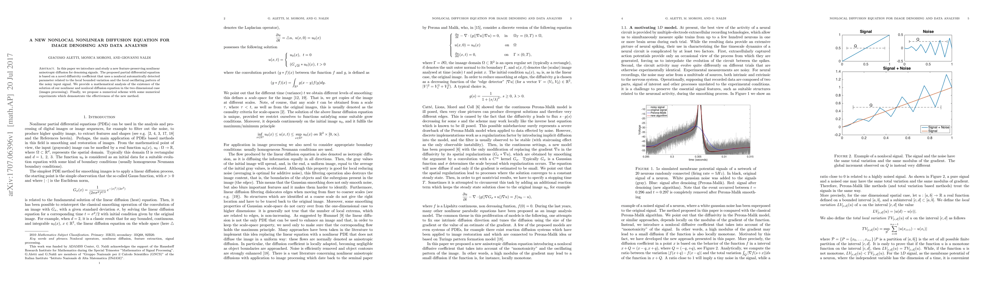 In this paper we introduce and study a new feature-preserving nonlinear anisotropic diffusion for denoising signals. The proposed partial differential equation is based on a novel diffusivity coefficient that uses a nonlocal automatically detected parameter related to the local bounded variation and the local oscillating pattern of the noisy input signal. We provide a mathematical analysis of the existence of the solution of our nonlinear and nonlocal diffusion equation in the two dimensional case (images processing). Finally, we propose a numerical scheme with some numerical experiments which demonstrate the effectiveness of the new method.