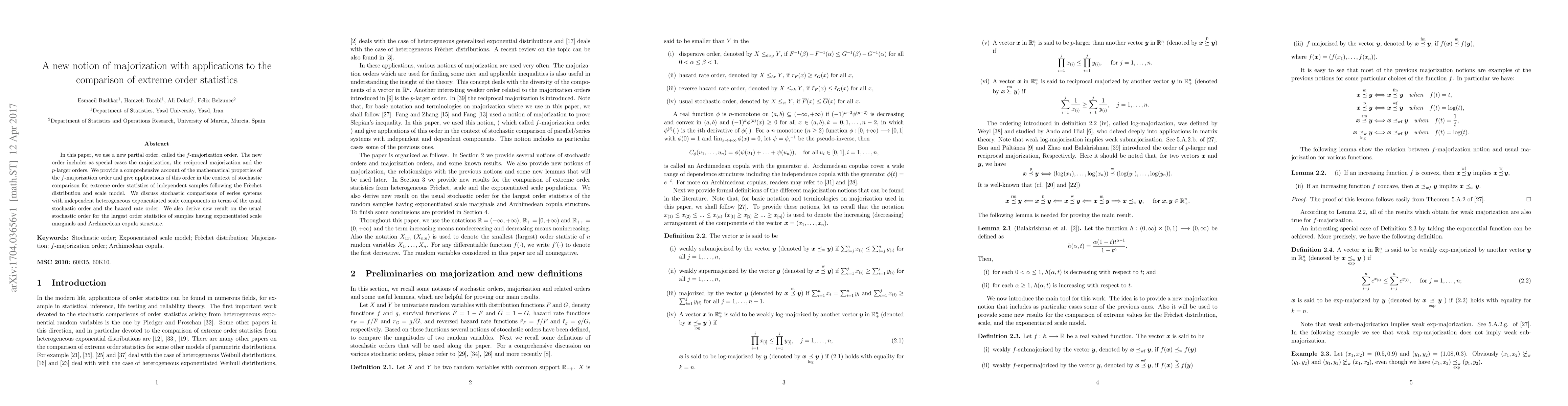 In this paper, we use a new partial order, called the f-majorization order. The new order includes as special cases the majorization , the reciprocal majorization and the p-larger orders. We provide a comprehensive account of the mathematical properties of the f-majorization order and give applications of this order in the context of stochastic comparison for extreme order statistics of independent samples following the Frechet distribution and scale model. We discuss stochastic comparisons of series systems with independent heterogeneous exponentiated scale components in terms of the usual stochastic order and the hazard rate order. We also derive new result on the usual stochastic order for the largest order statistics of samples having exponentiated scale marginals and Archimedean copula structure.