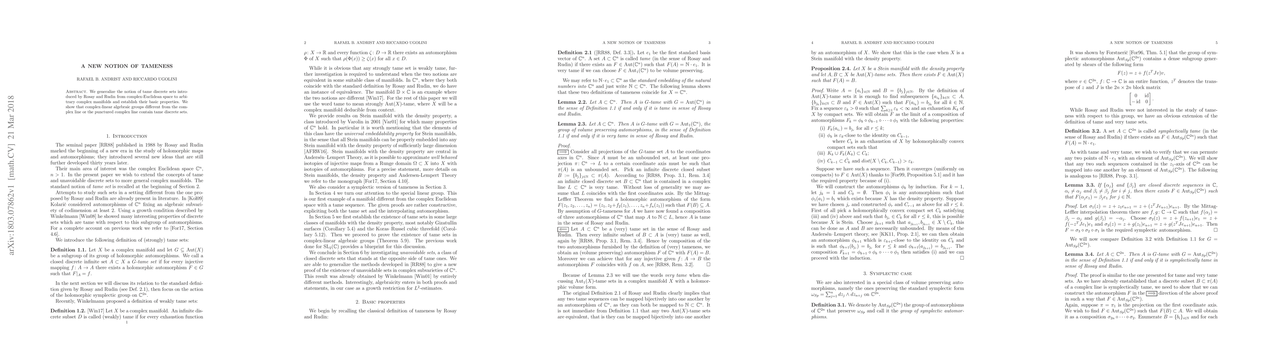 We generalize the notion of tame discrete sets introduced by Rosay and Rudin from complex-Euclidean space to arbitrary complex manifolds and establish their basic properties. We show that complex-linear algebraic groups different from the complex line or the punctured complex line contain tame discrete sets.