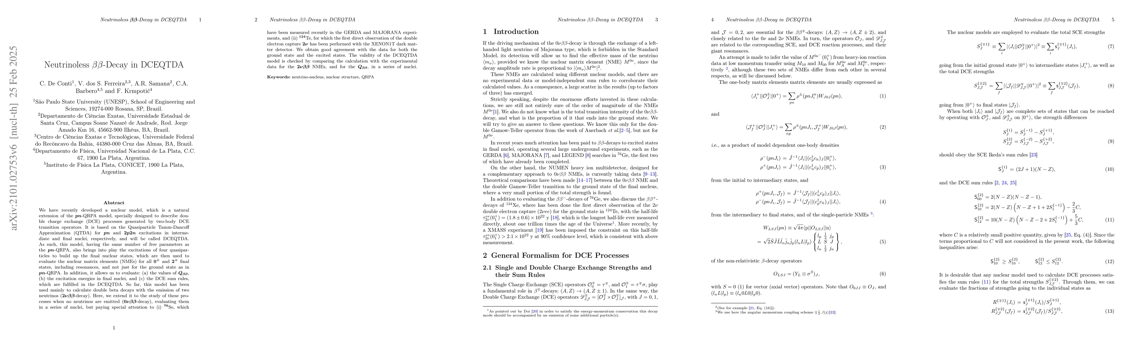 We have recently developed a nuclear model, specially designed to describe double charge exchange (DCE) processes,which is a natural extension of the $pn$-QRPA model for $\beta$-decay to $\beta\beta$-decay. Ergo, this model, in addition to including the pairing correlations and having the same number of free parameters, brings into play the $ppnn$-quasiparticle excitations and the Pauli Principle, which are essential ingredients to correctly account for the nuclear matrix elements (NMEs) for $\beta\beta$-decays and nuclear reactions to all $0^+$ and $2^+$ final states, including resonances, and not just to the ground state as in $pn$-QRPA. In addition, it allows us to evaluate the $Q_{\beta\beta}$-values, and the excitation energies in final nucleus, and to work with a single-particle space large enough for the DCE sum rules to be satisfied. So far it has been applied to the $2\nu\beta\beta$-decay, and here we extend it to the $0\nu\beta\beta$-decay. The model that comes closest in terms of its advantages is the shell model. We describe here the DCE observables in: i) $^{76}$Se, which have been recently measured in the GERDA and MAJORANA Experiments, and ii) $^{124}$Te, for which has been reported recently the first direct observation of $2\nu$ double electron capture with the XENON1T Dark Matter detector. A good agreement with the data is obtained for both the ground state and the excited states. We have found that the reaction and $0\nu\beta\beta$-decay NMEs are of the same order of magnitude even in the region of giant resonances.
