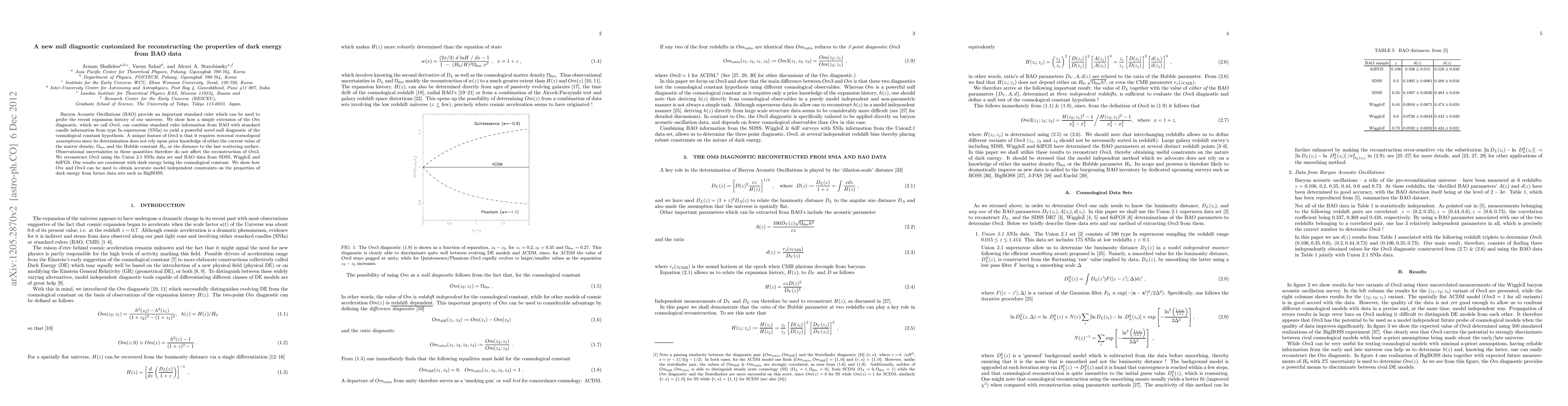 This paper introduces Om3, an extended version of the Om diagnostic, to reconstruct dark energy properties using BAO data and type Ia supernovae. Om3 requires minimal cosmological assumptions and is unaffected by observational uncertainties, providing consistent results with the cosmological constant hypothesis.
