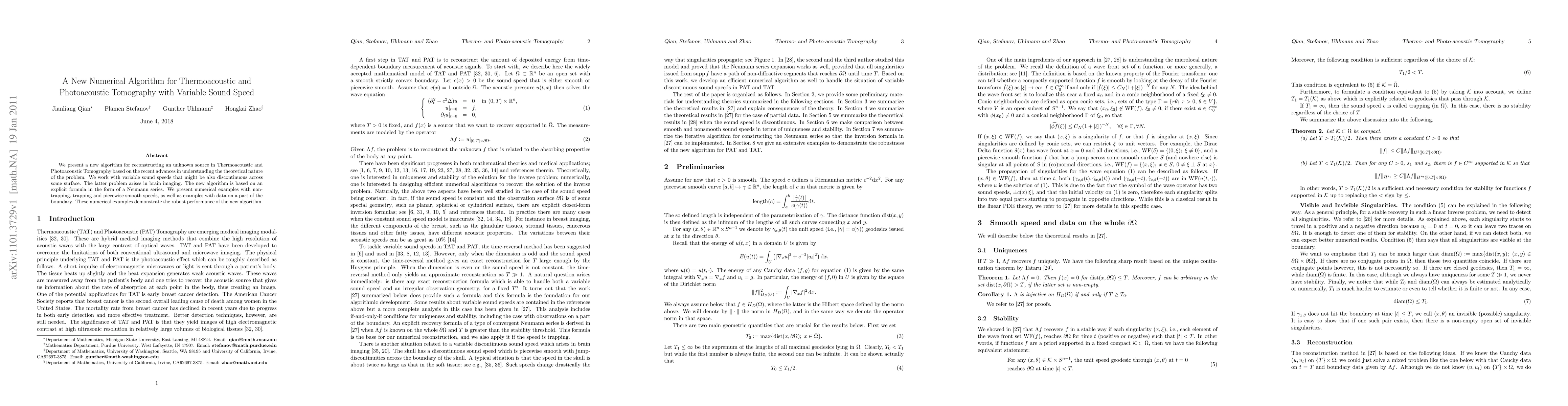 Researchers develop a new algorithm for reconstructing unknown sources in Thermoacoustic Tomography, accounting for variable sound speeds, including discontinuous values across surfaces, with promising numerical results.