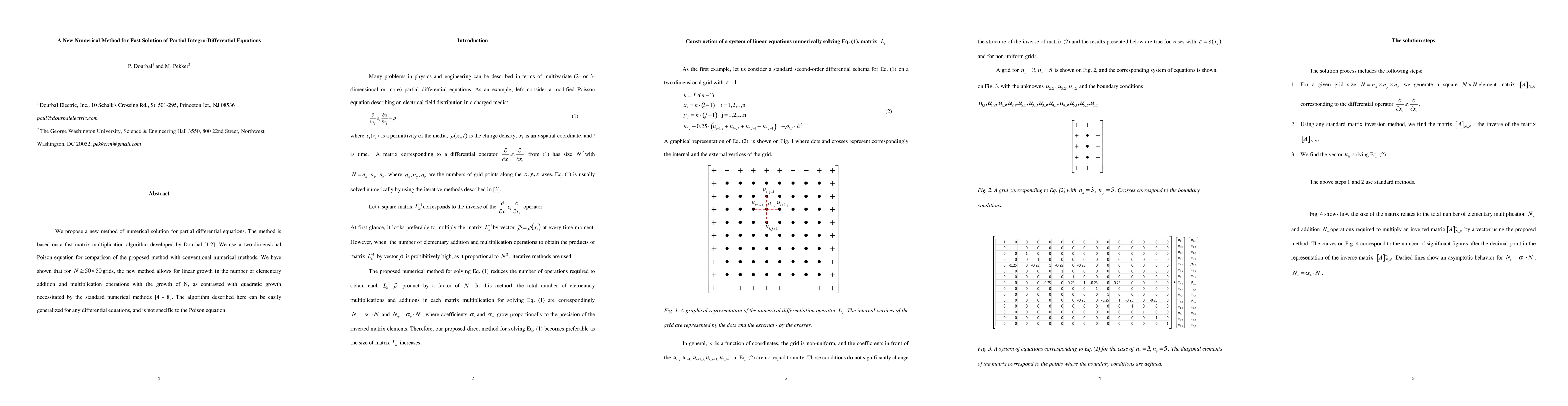 The paper proposes a new numerical method for solving partial differential equations using a fast matrix multiplication algorithm, which demonstrates linear growth in computational operations compared to the quadratic growth of conventional methods, as demonstrated through the two-dimensional Poisson equation. The method is versatile and can be generalized for various differential equations.