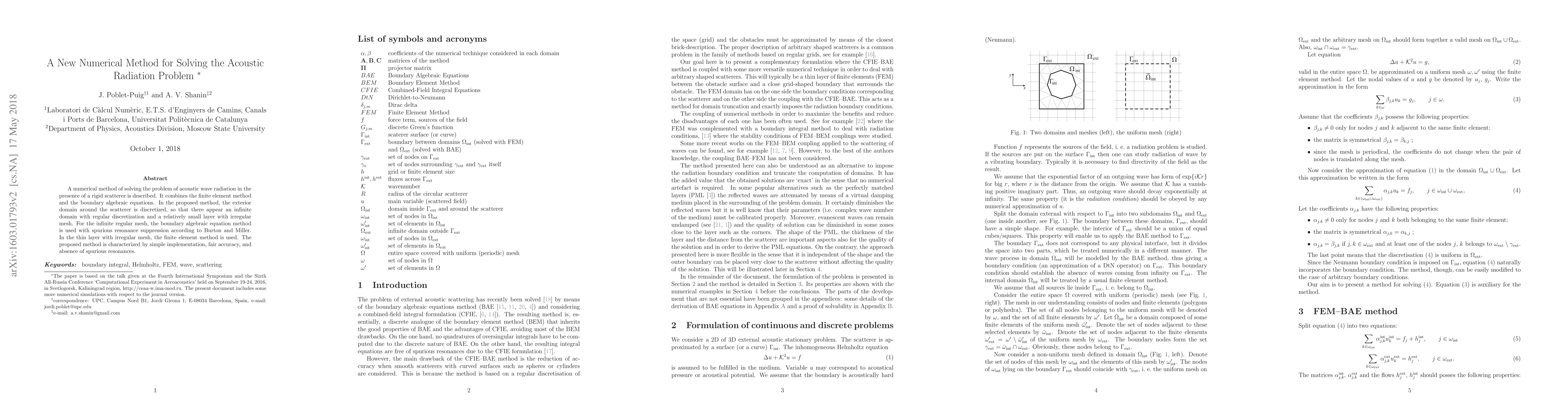A new numerical method combines finite element and boundary algebraic equations to solve acoustic wave radiation problems, offering simple implementation and fair accuracy without spurious resonances.