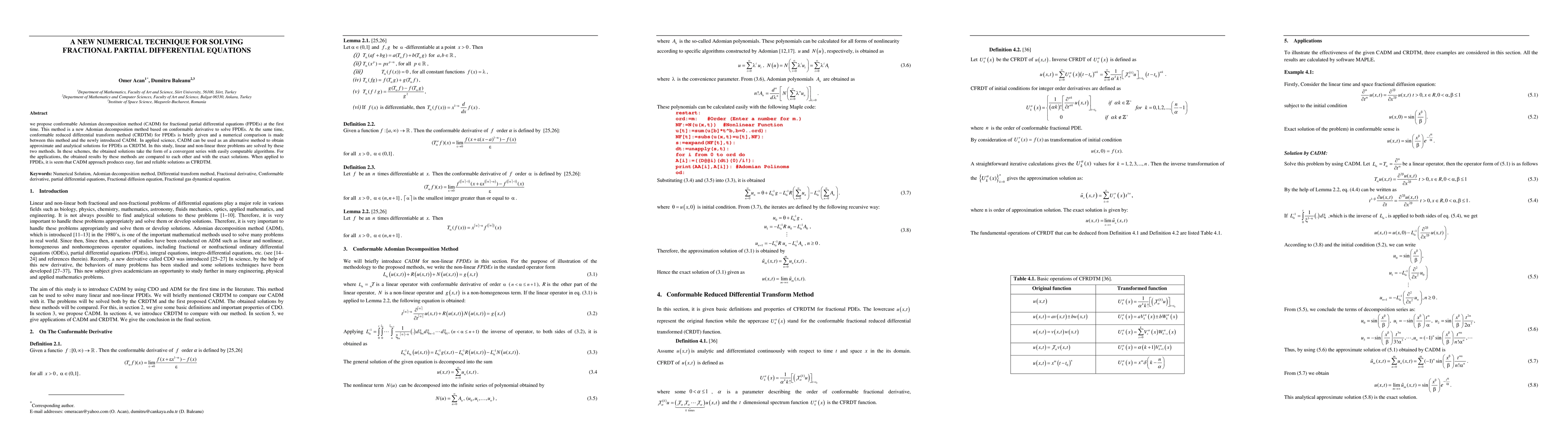 This paper introduces the conformable Adomian decomposition method (CADM) for solving fractional partial differential equations (FPDEs) using the conformable derivative operator. It also presents a comparison with the conformable reduced differential transform method (CRDTM) and demonstrates CADM's efficiency through solving linear and non-linear FPDE problems, showing it provides reliable and fast solutions.