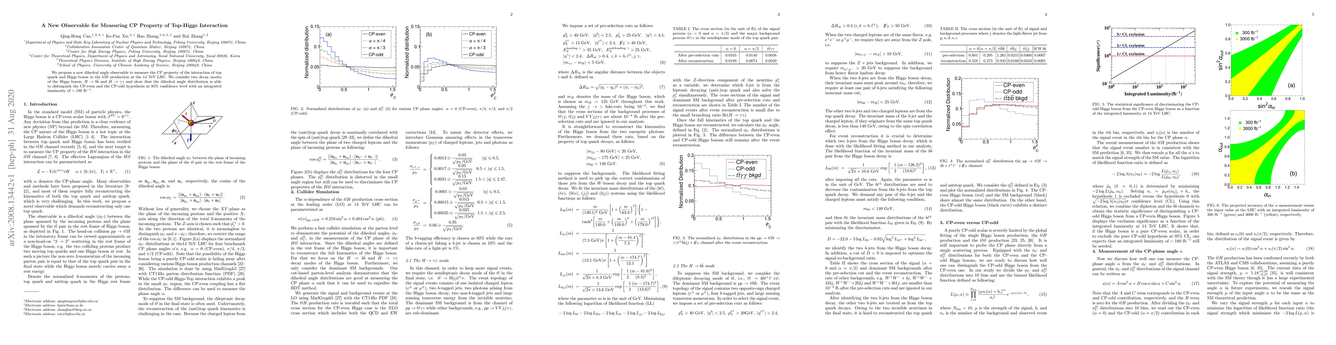 Researchers propose a new method to measure CP property of top-Higgs interaction using dihedral angle observable with 95% confidence level at 180 fb^-1 integrated luminosity.