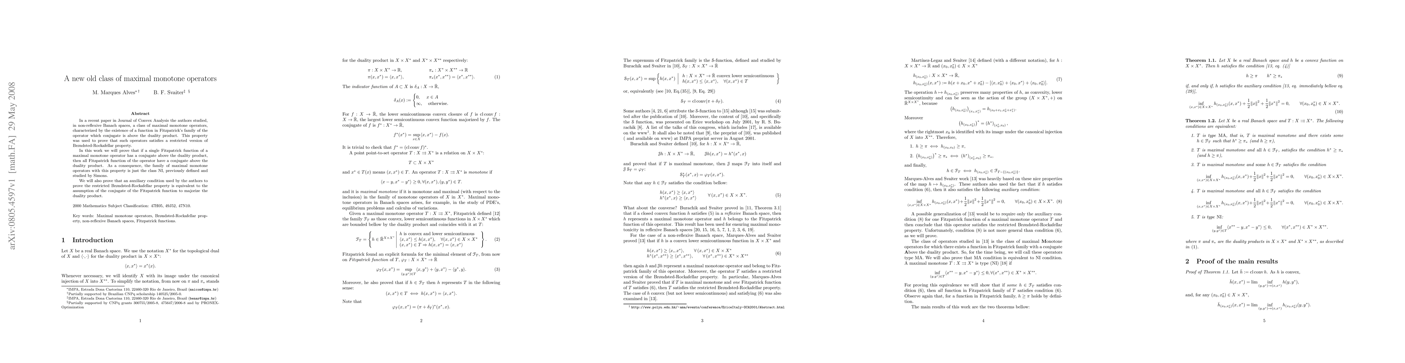 The paper analyzes maximal monotone operators in non-reflexive Banach spaces, focusing on operators characterized by the existence of a function in Fitzpatrick's family whose conjugate is above the duality product.