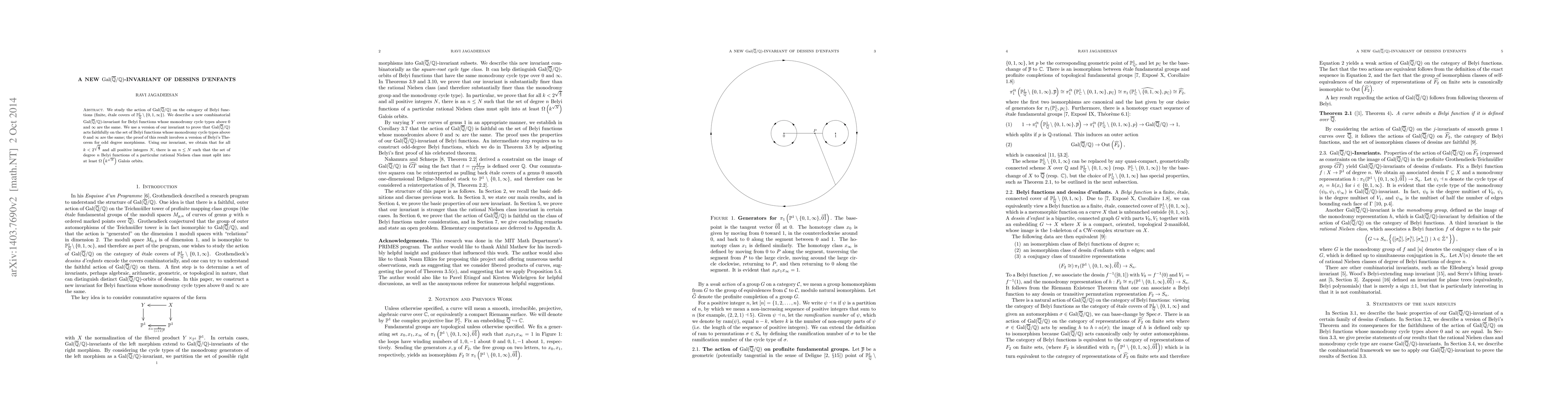 This paper introduces a new $\operatorname{Gal}(\overline{\mathbb{Q}}/\mathbb{Q})$-invariant for dessins d'enfants, ensuring the same monodromy cycle types above $0$ and $\infty$. It proves that $\operatorname{Gal}(\overline{\mathbb{Q}}/\mathbb{Q})$ acts faithfully on Belyi functions with identical cycle types and demonstrates that a certain number of Galois orbits exist for degree $n$ Belyi functions.