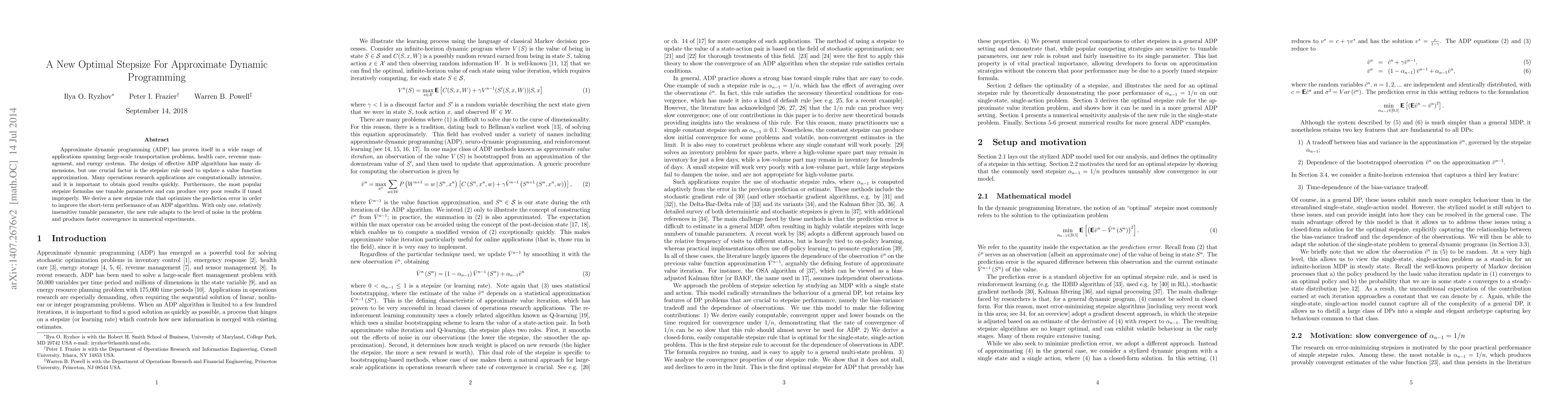 This research introduces a new optimal stepsize rule for Approximate Dynamic Programming (ADP) algorithms, designed to minimize prediction error and enhance short-term performance. The proposed rule requires only one insensitive tunable parameter, adapting to noise levels and demonstrating faster convergence in numerical experiments.