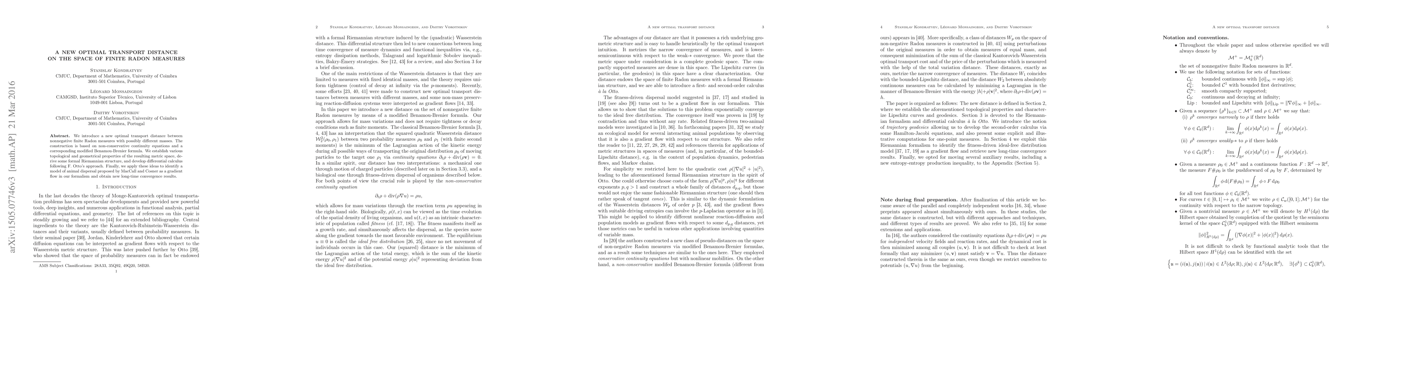 We introduce a new optimal transport distance between nonnegative finite Radon measures with possibly different masses. The construction is based on non-conservative continuity equations and a corresponding modified Benamou-Brenier formula. We establish various topological and geometrical properties of the resulting metric space, derive some formal Riemannian structure, and develop differential calculus following F. Otto's approach. Finally, we apply these ideas to identify an ideal free distribution model of population dynamics as a gradient flow and obtain new long-time convergence results.