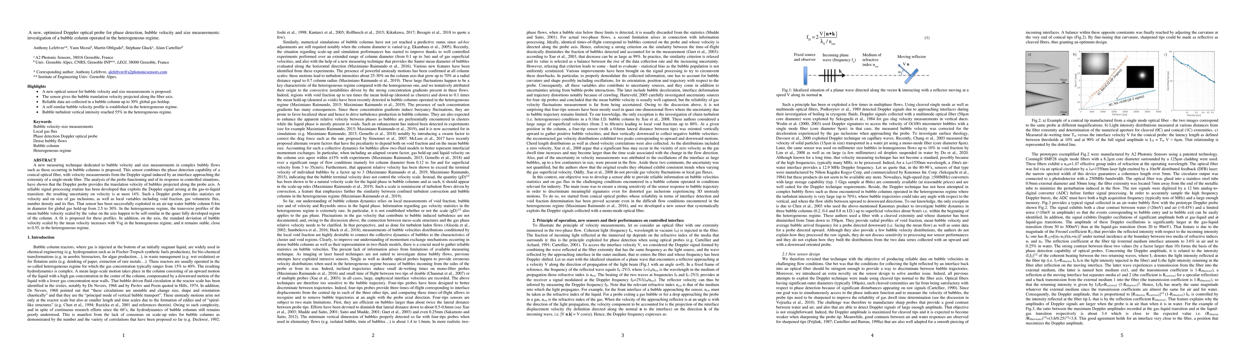 This paper introduces a novel Doppler optical probe for measuring bubble velocity and size in bubble columns, combining phase detection and Doppler signal analysis. The probe successfully measures bubble dynamics in an air-tap water column, showing self-similar mean bubble velocity profiles in the fully developed region and stable standard deviation in the heterogeneous regime.
