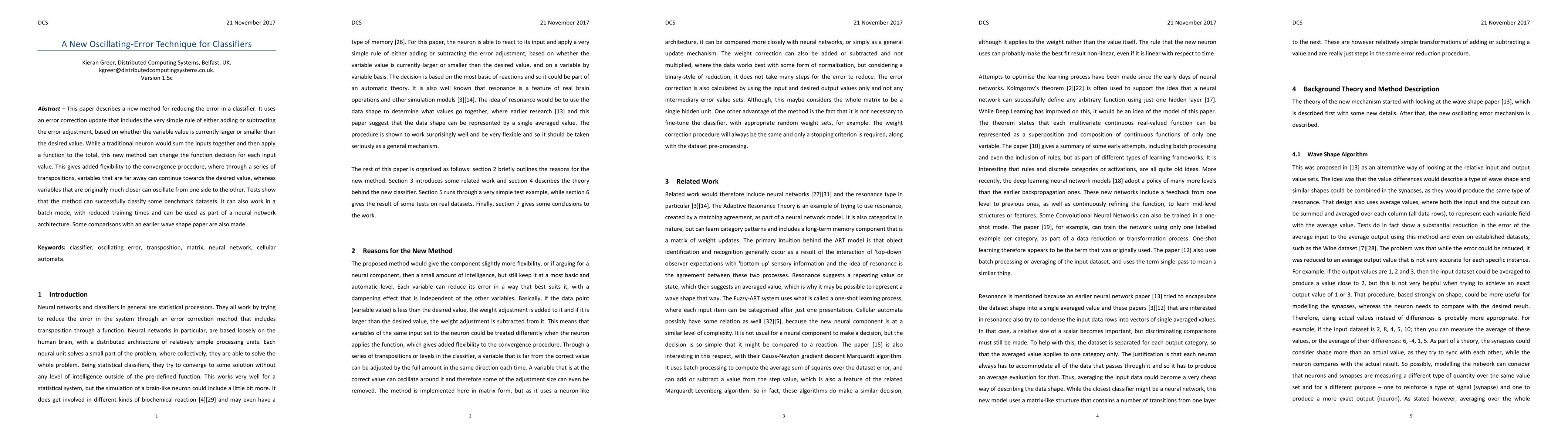 This paper describes a new method for reducing the error in a classifier. It uses an error correction update that includes the very simple rule of either adding or subtracting the error adjustment, based on whether the variable value is currently larger or smaller than the desired value. While a traditional neuron would sum the inputs together and then apply a function to the total, this new method can change the function decision for each input value. This gives added flexibility to the convergence procedure, where through a series of transpositions, variables that are far away can continue towards the desired value, whereas variables that are originally much closer can oscillate from one side to the other. Tests show that the method can successfully classify some benchmark datasets. It can also work in a batch mode, with reduced training times and can be used as part of a neural network architecture. Some comparisons with an earlier wave shape paper are also made.
