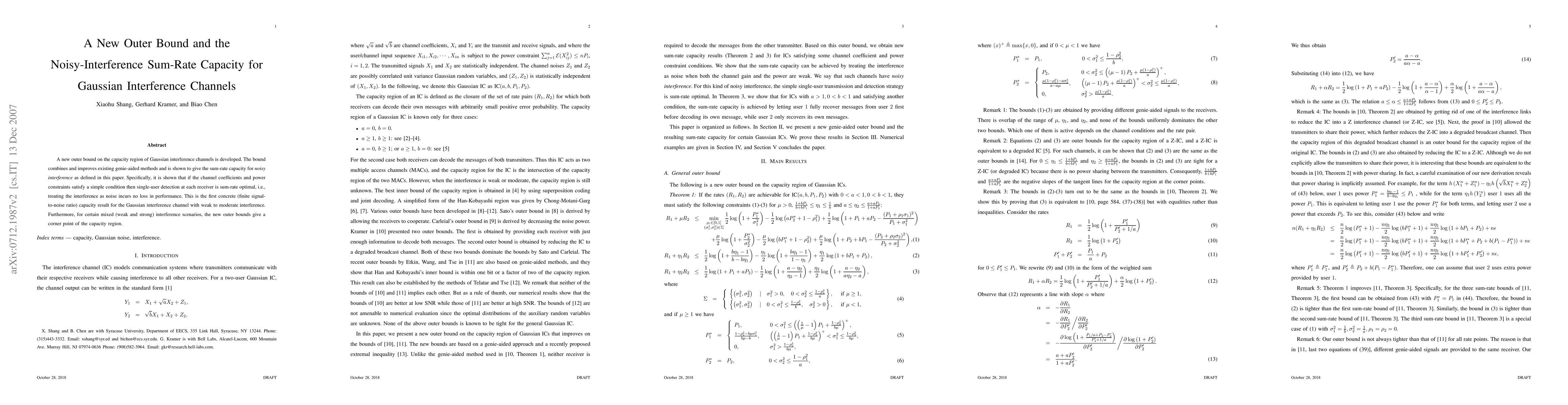 A new outer bound on the capacity region of Gaussian interference channels is developed. The bound combines and improves existing genie-aided methods and is shown to give the sum-rate capacity for noisy interference as defined in this paper. Specifically, it is shown that if the channel coefficients and power constraints satisfy a simple condition then single-user detection at each receiver is sum-rate optimal, i.e., treating the interference as noise incurs no loss in performance. This is the first concrete (finite signal-to-noise ratio) capacity result for the Gaussian interference channel with weak to moderate interference. Furthermore, for certain mixed (weak and strong) interference scenarios, the new outer bounds give a corner point of the capacity region.