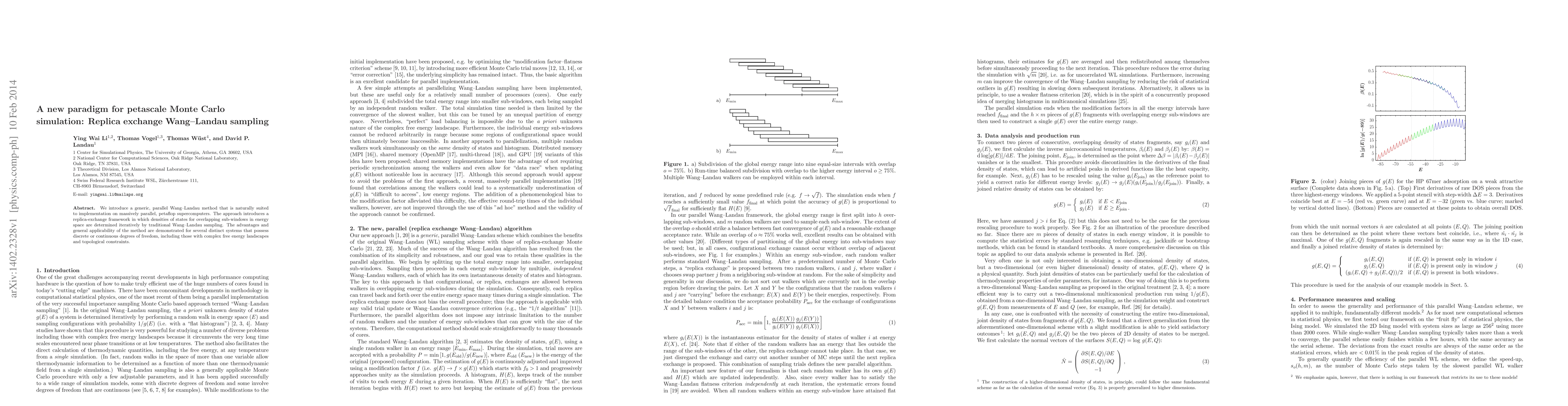 This paper proposes a parallel Wang-Landau sampling method for petascale Monte Carlo simulations, utilizing a replica-exchange framework to iteratively determine densities of states. The method's effectiveness is demonstrated across various systems with different degrees of freedom and complex free energy landscapes.