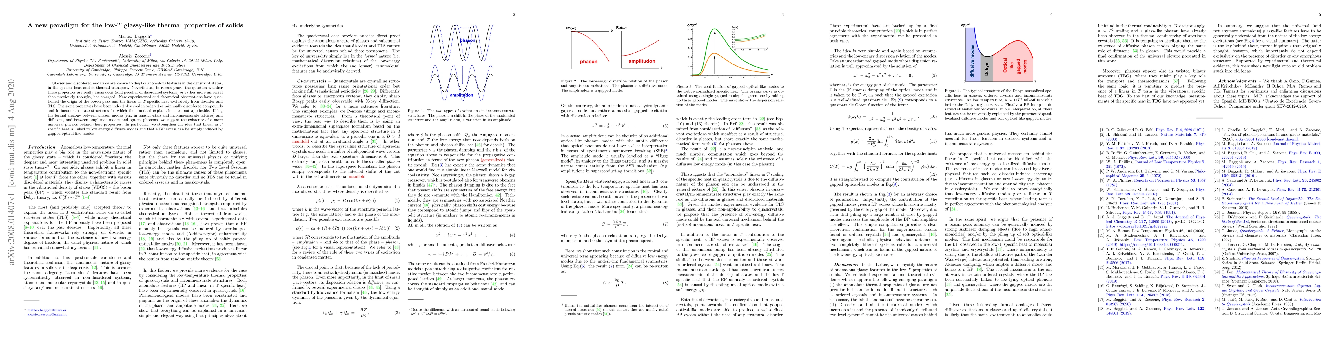 Glasses and disordered materials are known to display anomalous features in the density of states, in the specific heat and in thermal transport. Nevertheless, in recent years, the question whether these properties are really anomalous (and peculiar of disordered systems) or rather more universal than previously thought, has emerged. New experimental and theoretical observations have questioned the origin of the boson peak and the linear in T specific heat exclusively from disorder and TLS. The same properties have been indeed observed in ordered or minimally disordered compounds and in incommensurate structures for which the standard explanations are not applicable. Using the formal analogy between phason modes (e.g. in quasicrystals and incommensurate lattices) and diffusons, and between amplitude modes and optical phonons, we suggest the existence of a more universal physics behind these properties. In particular, we strengthen the idea that linear in T specific heat is linked to low energy diffusive modes and that a BP excess can be simply induced by gapped optical-like modes.