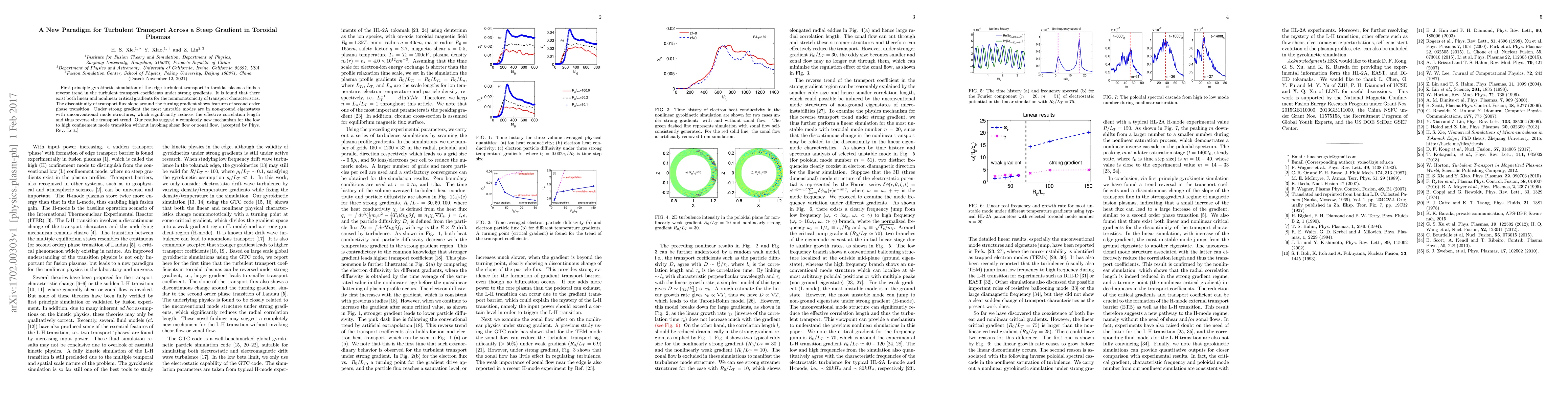This paper presents gyrokinetic simulations revealing a reverse trend in turbulent transport in toroidal plasmas under strong gradients, identifying linear and nonlinear critical gradients for nonmonotonic transport. The study suggests a new mechanism for the low to high confinement mode transition, characterized by unconventional mode structures and reduced correlation length, without relying on shear or zonal flows.