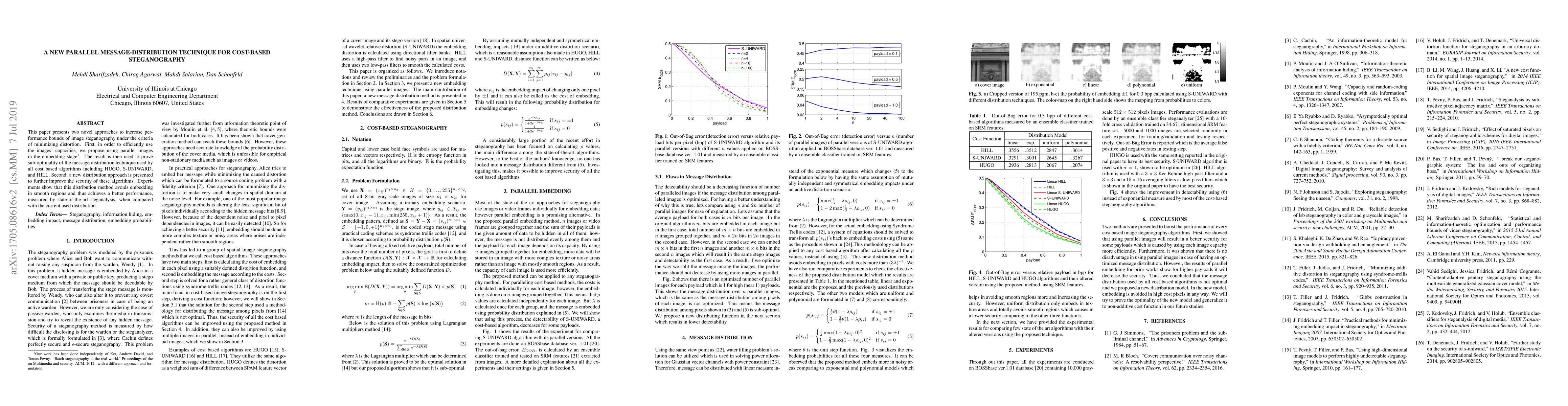This paper introduces parallel message-distribution techniques for cost-based steganography, proposing a new method to utilize parallel images for embedding and demonstrating the sub-optimality of existing distribution techniques. It also presents an improved distribution approach that avoids embedding in smooth regions, enhancing performance and security.