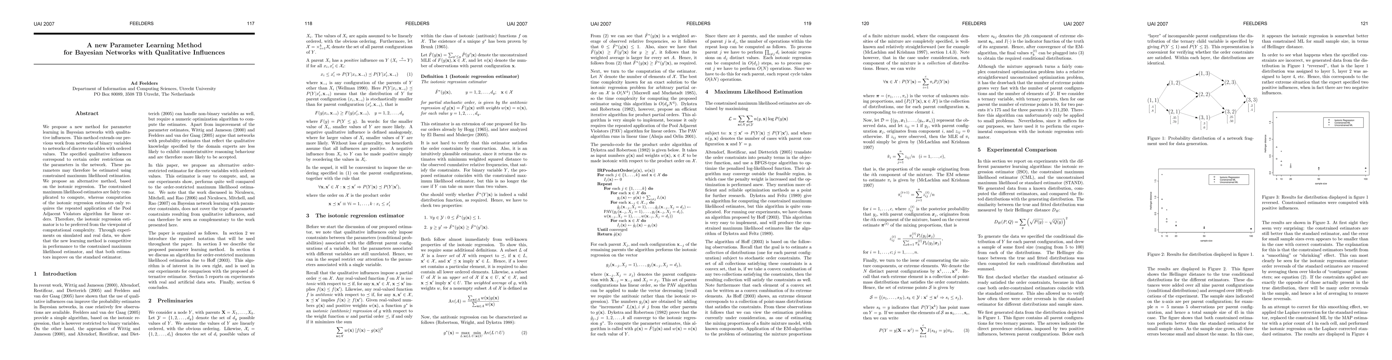 This paper introduces a new parameter learning method for Bayesian networks with qualitative influences, extending previous binary methods to discrete variables. It proposes an isotonic regression approach for computational efficiency, demonstrating competitive performance against constrained maximum likelihood estimation.