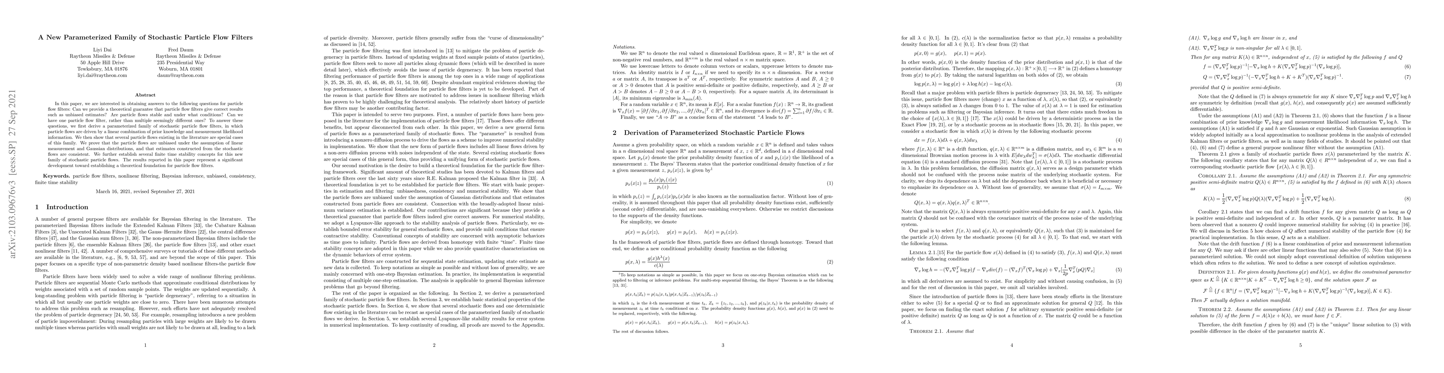 This paper introduces a new parameterized family of stochastic particle flow filters, proving their unbiasedness and consistency under linear measurements and Gaussian distributions. It also establishes finite time stability concepts, providing a theoretical foundation for these filters and showing that existing particle flows are special cases within this new framework.