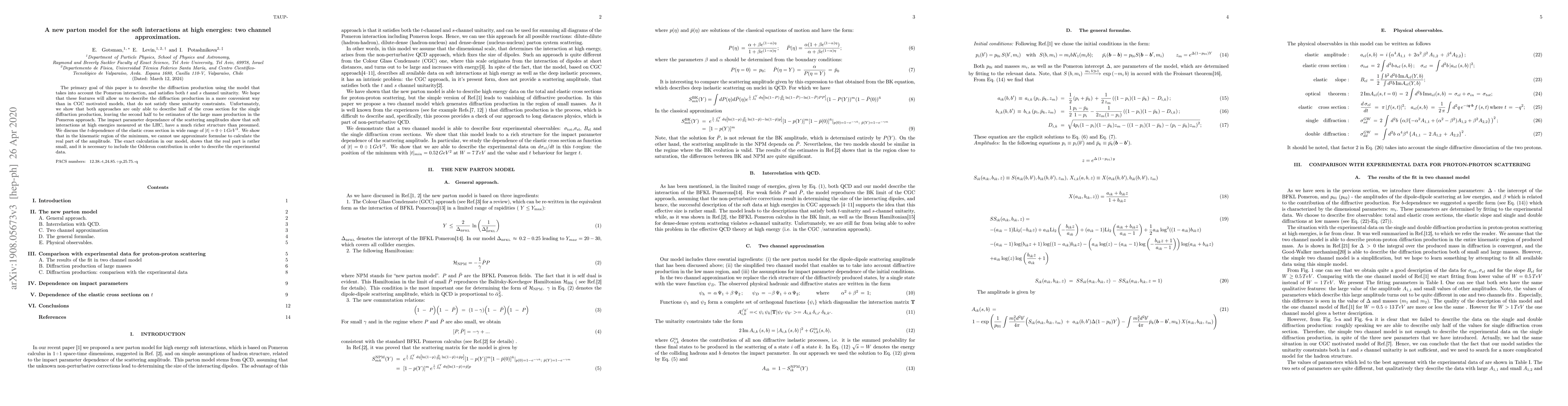 The primary goal of this paper is to describe the diffraction production using the model that takes into account the Pomeron interaction, and satisfies both $t$ and $s$ channel unitarity. We hope that these features will allow us to describe the diffraction production in a more convenient way than in CGC motivated models, that do not satisfy these unitarity constraints. Unfortunately, we show that both approaches are only able to describe half of the cross section for the single diffraction production, leaving the second half to be estimate of the large mass production in the Pomeron approach.The impact parameter dependance of the scattering amplitudes show that soft interactions at high energies measured at the LHC, have a much richer structure than presumed. We discuss the $t$-dependence of the elastic cross section in wide range of $|t|=0 \div 1 \,GeV^2 $. We show that in the kinemati region of the minimum, we cannot use approximate formulae to calculate the real part of the amplitude. The exact calculation in our model, shows that the real part is rather small, and it is necessary to include the Odderon contribution in order to describe the experimental data.
