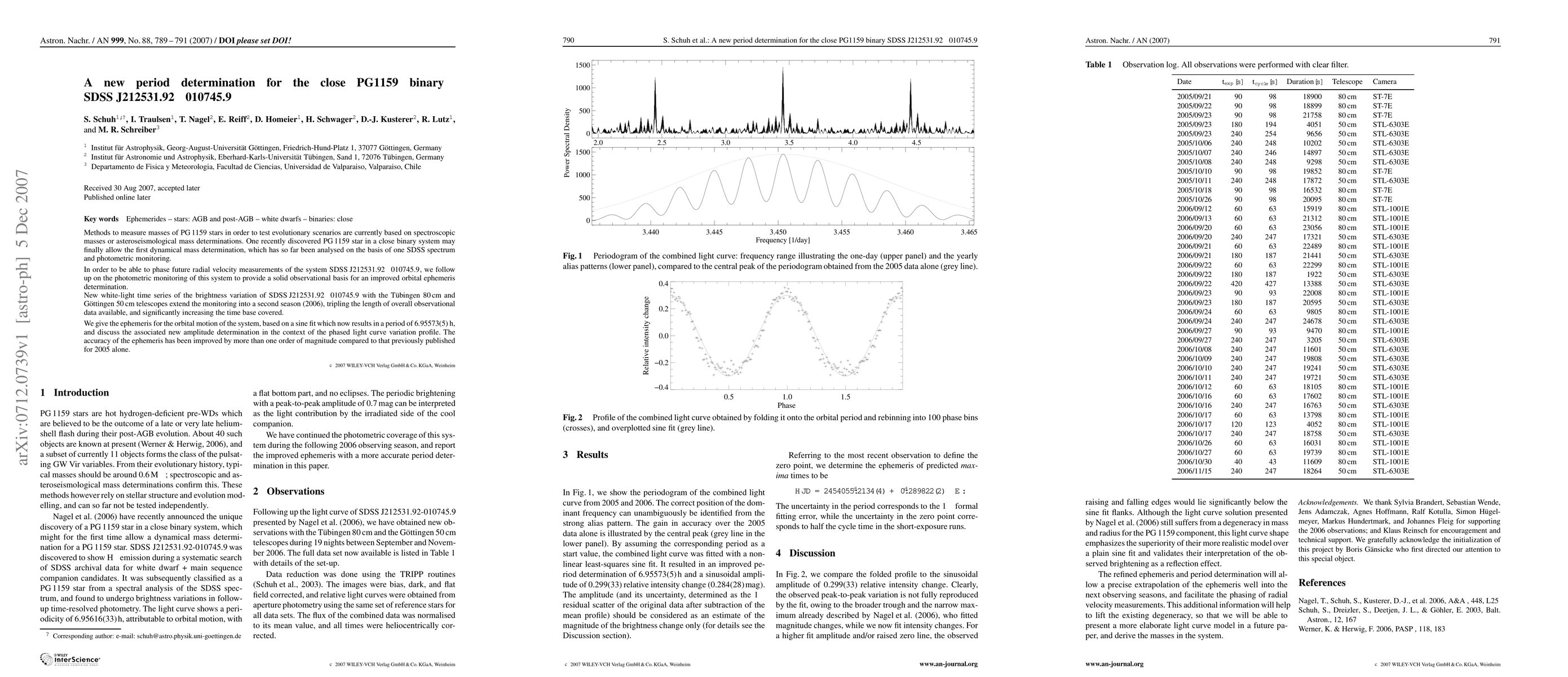 Methods to measure masses of PG1159 stars in order to test evolutionary scenarios are currently based on spectroscopic masses or asteroseismological mass determinations. One recently discovered PG1159 star in a close binary system may finally allow the first dynamical mass determination, which has so far been analysed on the basis of one SDSS spectrum and photometric monitoring. In order to be able to phase future radial velocity measurements of the system SDSSJ212531.92-010745.9, we follow up on the photometric monitoring of this system to provide a solid observational basis for an improved orbital ephemeris determination. New white-light time series of the brightness variation of SDSSJ212531.92-010745.9 with the Tuebingen 80cm and Goettingen 50cm telescopes extend the monitoring into a second season (2006), tripling the length of overall observational data available, and significantly increasing the time base covered. We give the ephemeris for the orbital motion of the system, based on a sine fit which now results in a period of 6.95573(5)h, and discuss the associated new amplitude determination in the context of the phased light curve variation profile. The accuracy of the ephemeris has been improved by more than one order of magnitude compared to that previously published for 2005 alone.
