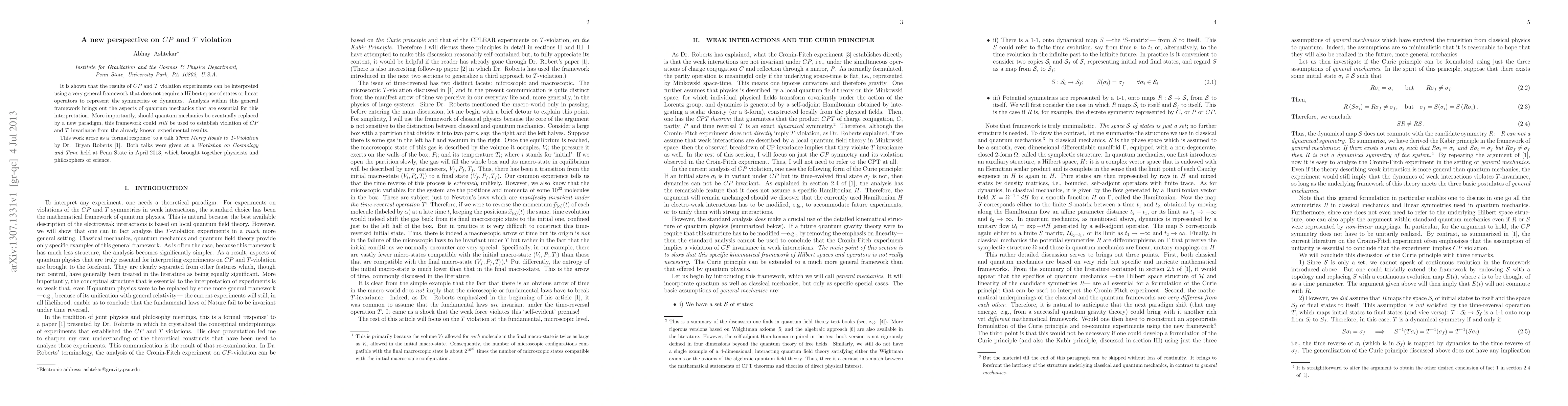 It is shown that the results of CP and T violation experiments can be interpreted using a very general framework that does not require a Hilbert space of states or linear operators to represent the symmetries or dynamics. Analysis within this general framework brings out the aspects of quantum mechanics that are essential for this interpretation. More importantly, should quantum mechanics be eventually replaced by a new paradigm, this framework could \emph{still} be used to establish violation of CP and T invariance from the already known experimental results. This work arose as a `formal response' to a talk "Three Merry Roads to T-Violation" by Dr. Bryan Roberts [1]. Both talks were given at a "Workshop on Cosmology and Time" held at Penn State in April 2013, which brought together physicists and philosophers of science.