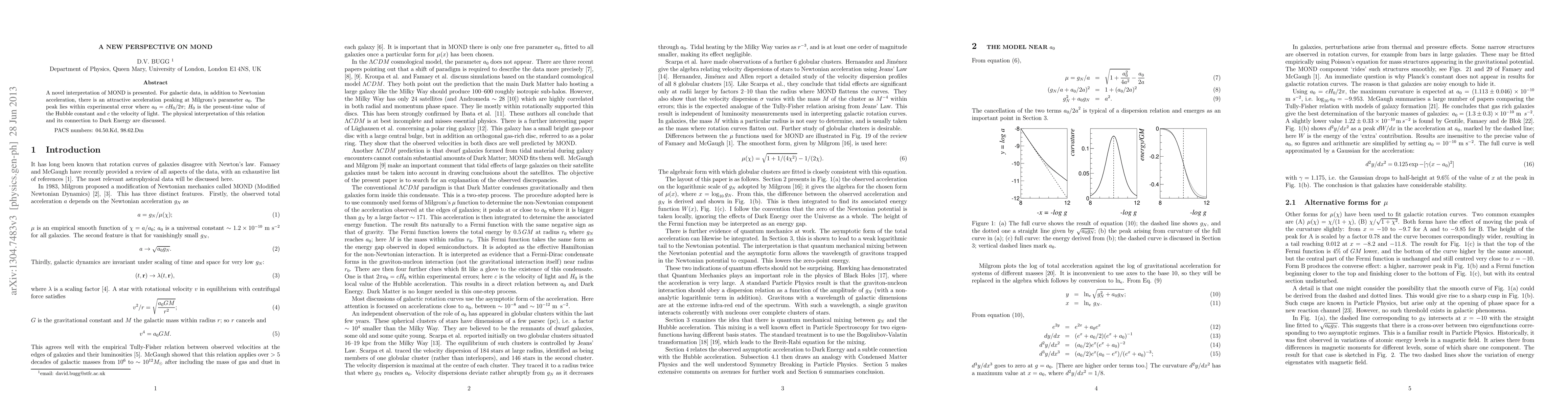 A novel interpretation of MOND is presented. For galactic data, in addition to Newtonian acceleration, there is an attractive acceleration peaking at Milgrom's parameter a_0. The peak lies within experimental error where a_0 = cH_0/2\pi; H_0 is the present-time value of the Hubble constant and c the velocity of light. The physical interpretation of this relation and its connection to Dark Energy are discussed.
