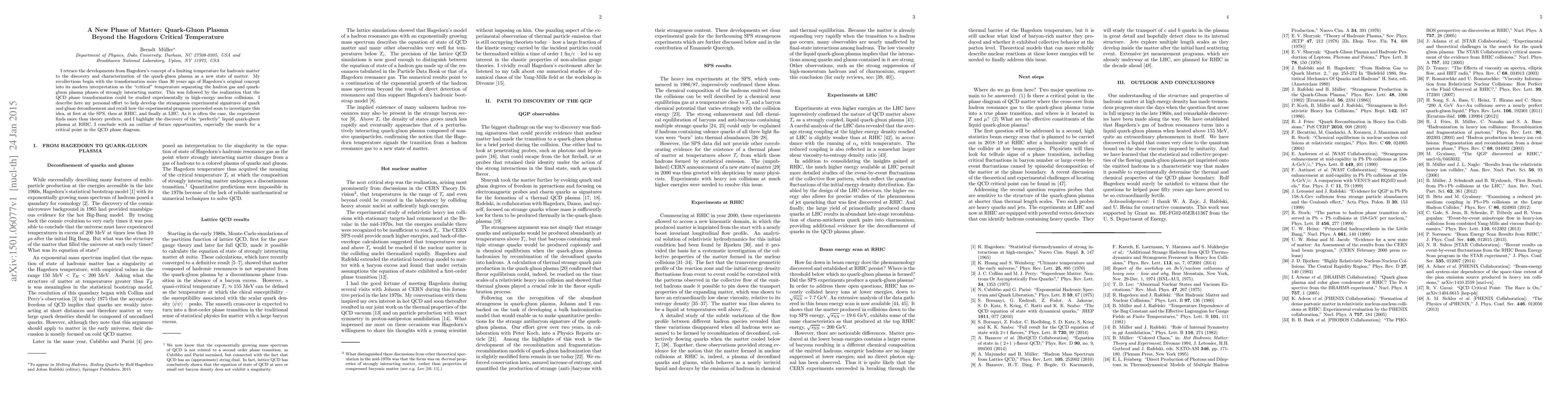 This paper recounts the evolution from Hagedorn's temperature limit to the discovery of quark-gluon plasma as a new state of matter, emphasizing experimental efforts to study its properties and the discovery of a "perfectly" liquid phase at RHIC, with future prospects for identifying a critical point in the QCD phase diagram.