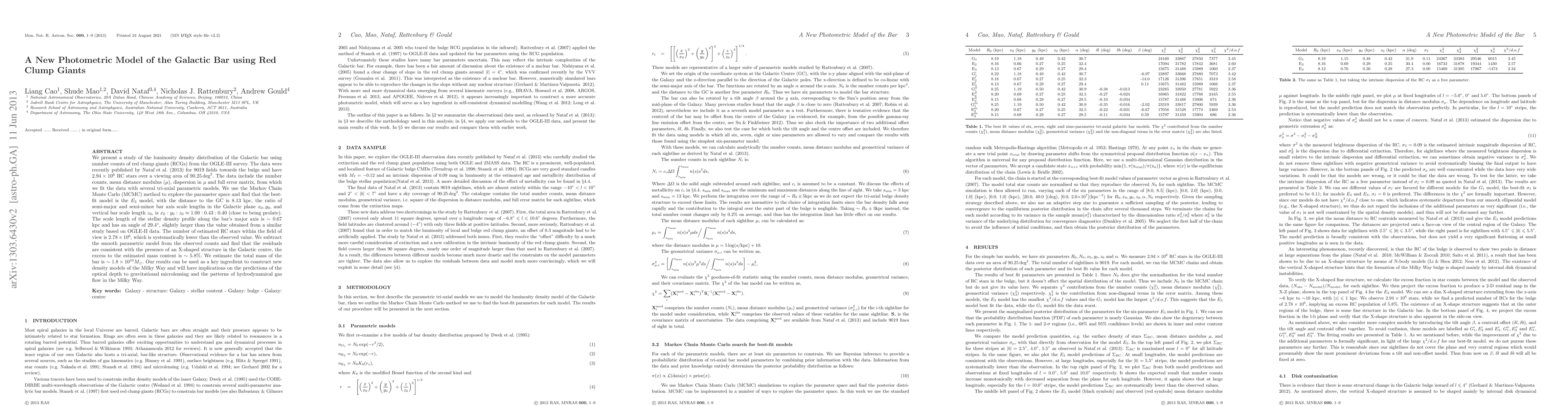 Researchers used red clump giants to map the Galactic bar's shape and size, finding it to be prolate with a mass of approximately 1.8 x 10^10 solar masses, with some excess mass indicating an X-shaped structure in its center.