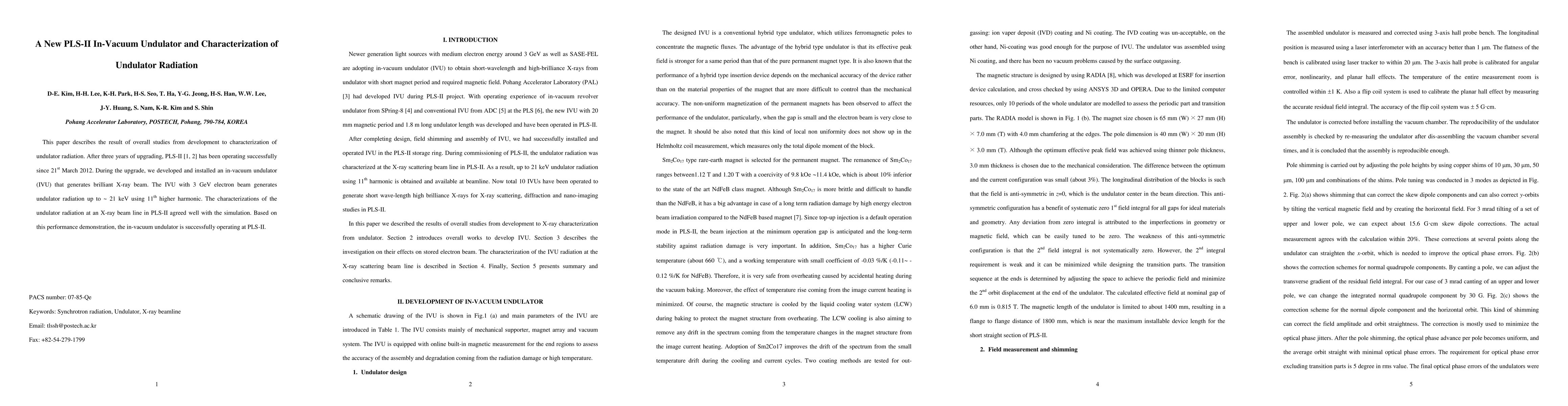The main technical contribution was the successful design, development, and installation of a new in-vacuum undulator for PLS-II.
