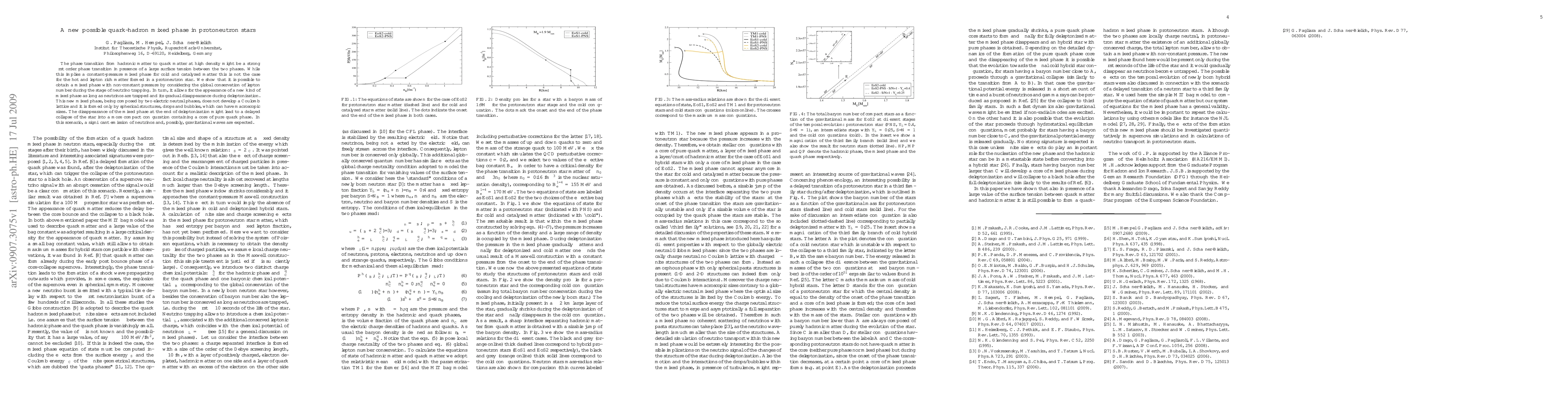 This paper proposes a new quark-hadron mixed phase in protoneutron stars, driven by the global conservation of lepton number during neutrino trapping. This phase, composed of non-constant pressure spherical structures, may lead to delayed collapse and significant neutrino and gravitational wave emissions.