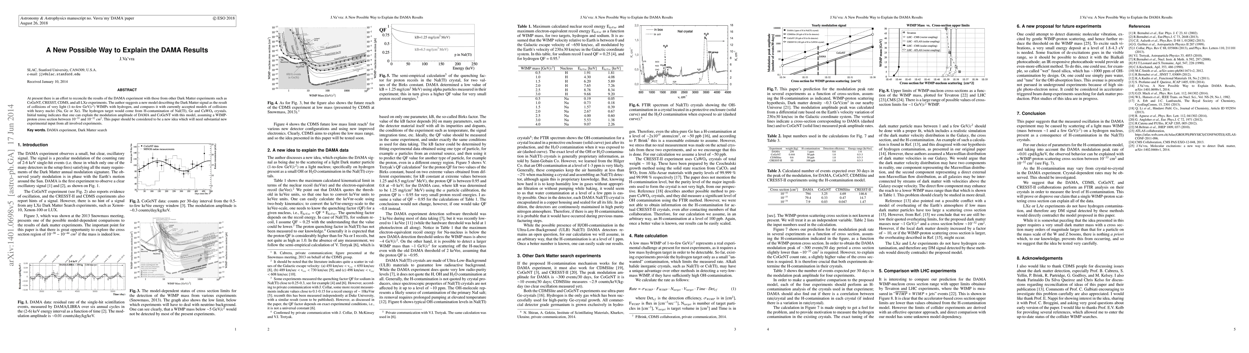 This paper proposes a new model to explain the DAMA experiment results by suggesting that very light WIMPs colliding with hydrogen, rather than heavy nuclei, could account for the observed signal. This model requires substantial new experimental validation to confirm its viability.