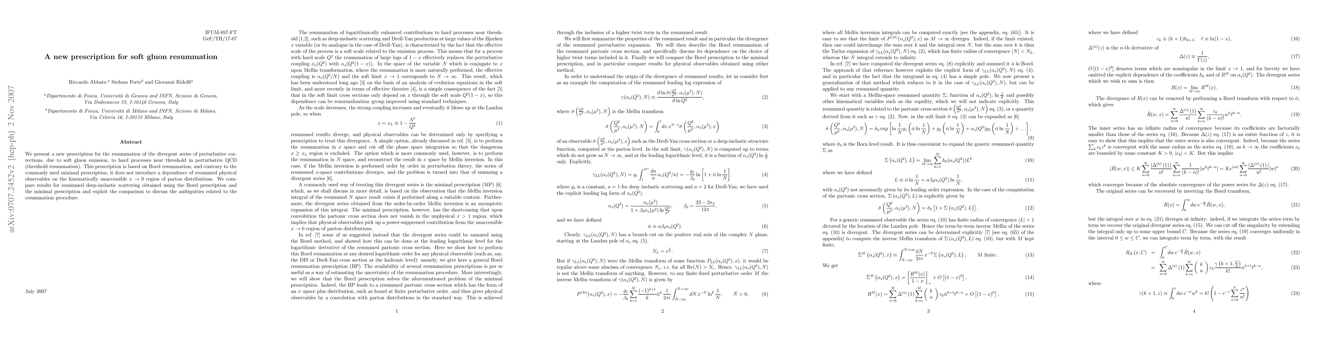 This paper introduces a novel Borel resummation method for soft gluon emission in perturbative QCD, contrasting it with the minimal prescription to avoid dependence on inaccessible parton distribution regions. The study compares deep-inelastic scattering results from both methods to discuss related ambiguities in the resummation process.