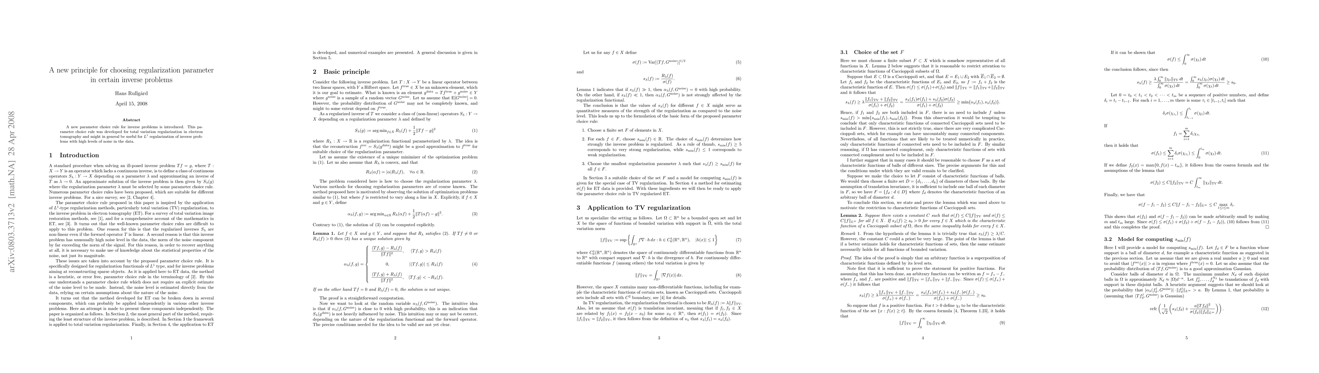 Summary: A new parameter choice rule for regularization in inverse problems, specifically for total variation regularization in electron tomography, is introduced. This method is also potentially applicable to $L^1$ regularization in noisy data scenarios.