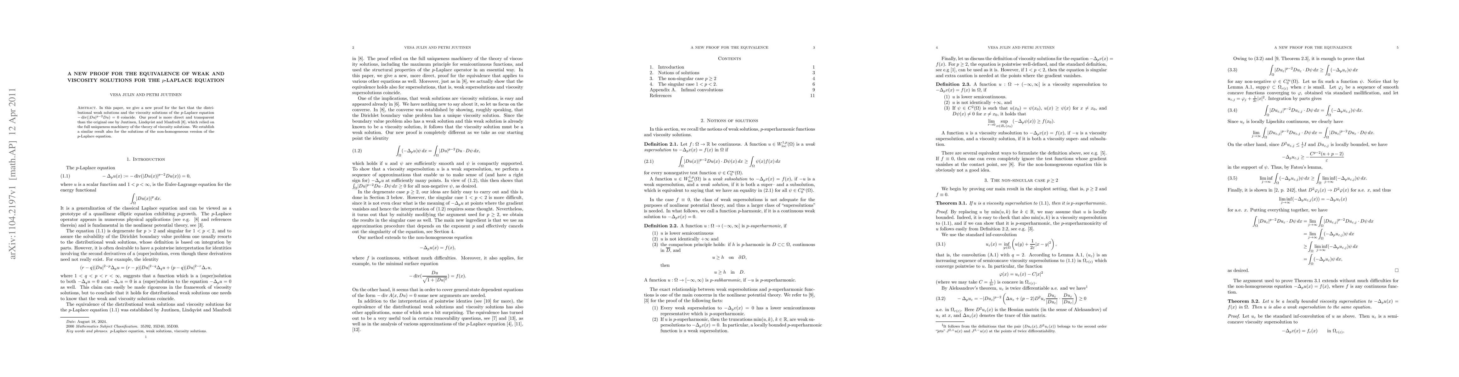This paper proves that weak and viscosity solutions to the $p$-Laplace equation coincide, offering a more direct and transparent proof than previous work, with implications for solving non-homogeneous versions of the equation.