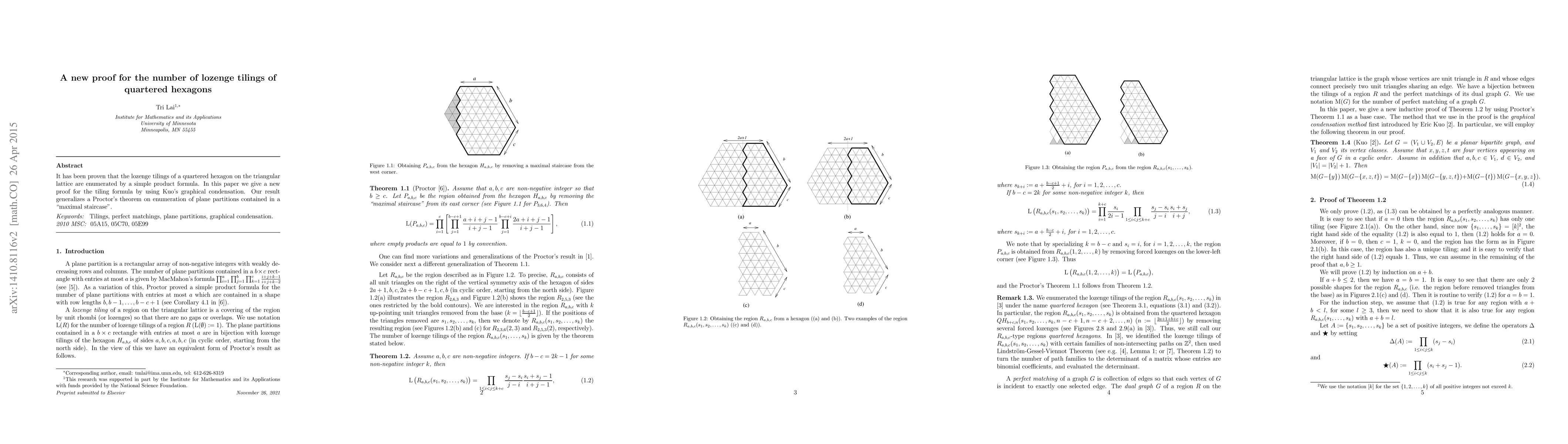 It has been proven that the lozenge tilings of a quartered hexagon on the triangular lattice are enumerated by a simple product formula. In this paper we give a new proof for the tiling formula by using Kuo's graphical condensation. Our result generalizes a Proctor's theorem on enumeration of plane partitions contained in a "maximal staircase".