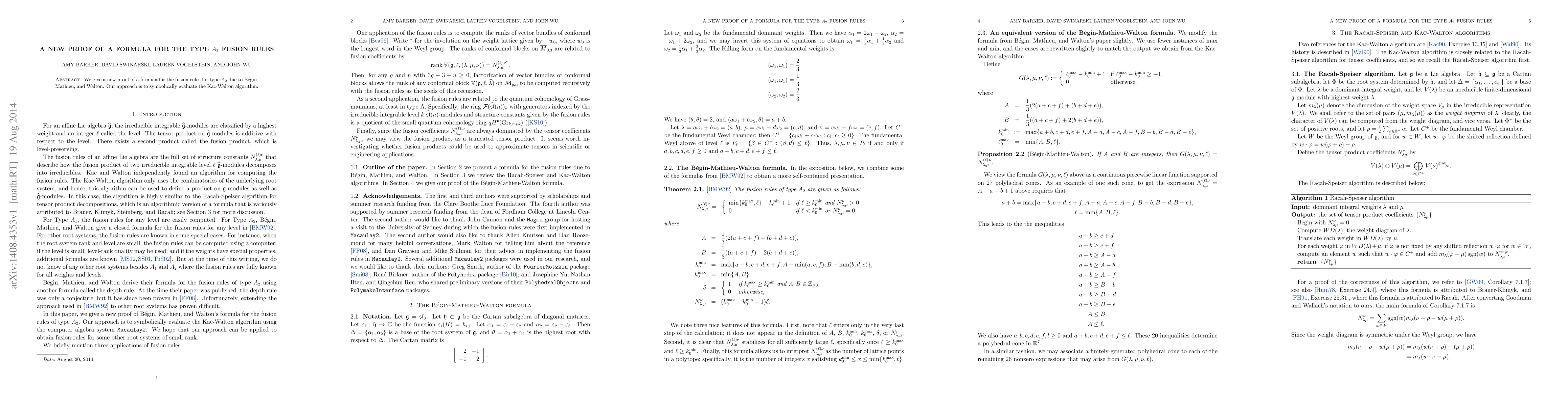 We give a new proof of a formula for the fusion rules for type $A_2$ due to B\'egin, Mathieu, and Walton. Our approach is to symbolically evaluate the Kac-Walton algorithm.