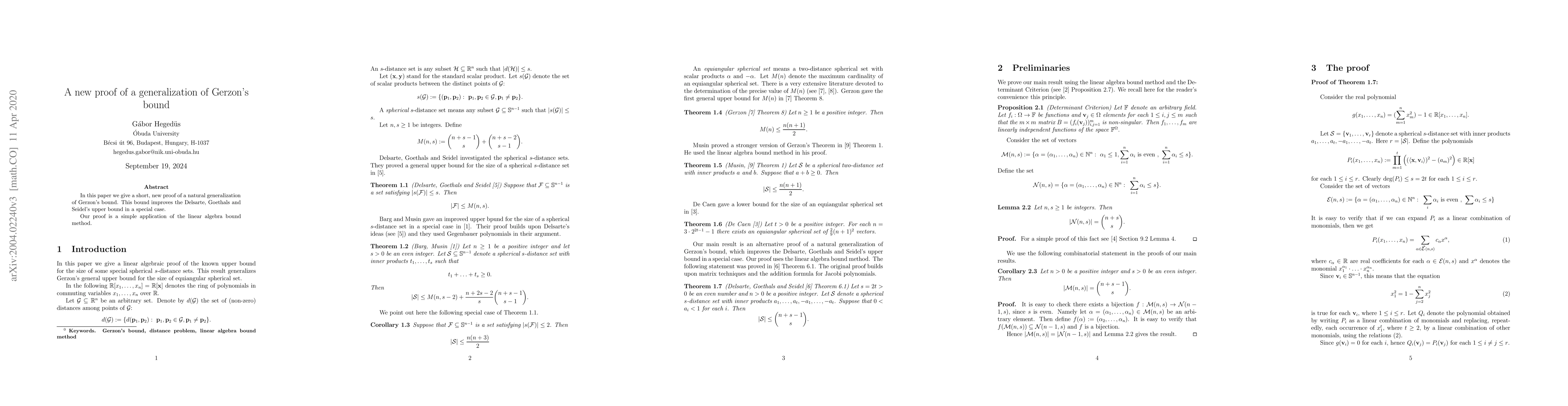 Summary: This paper presents a concise new proof for a generalized version of Gerzon's bound, enhancing Delsarte, Goethals, and Seidel's upper bound in specific cases, utilizing a straightforward linear algebra bound method.