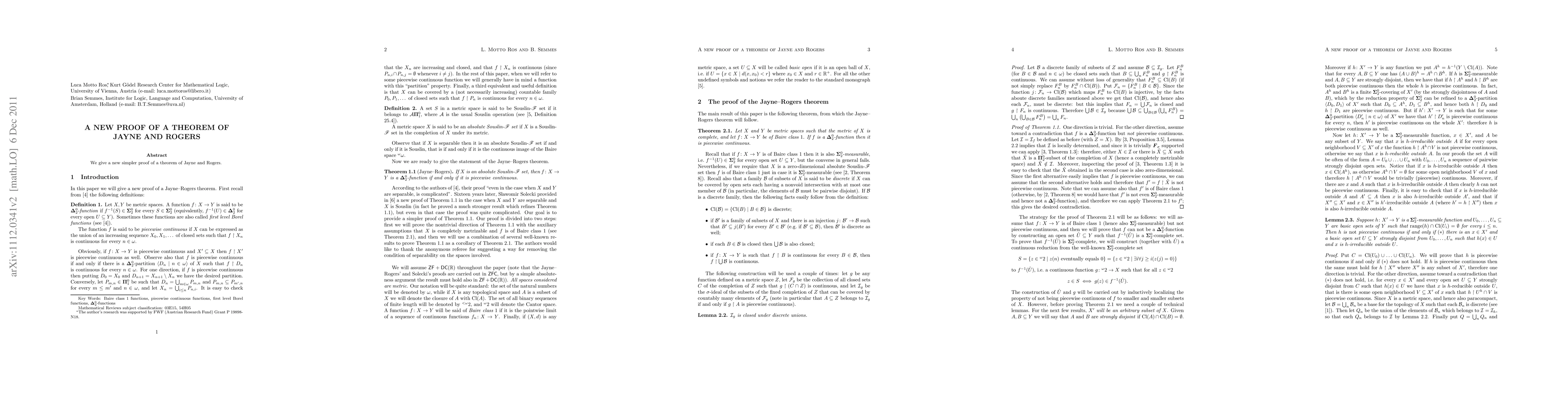 We give a new simpler proof of a theorem of Jayne and Rogers.