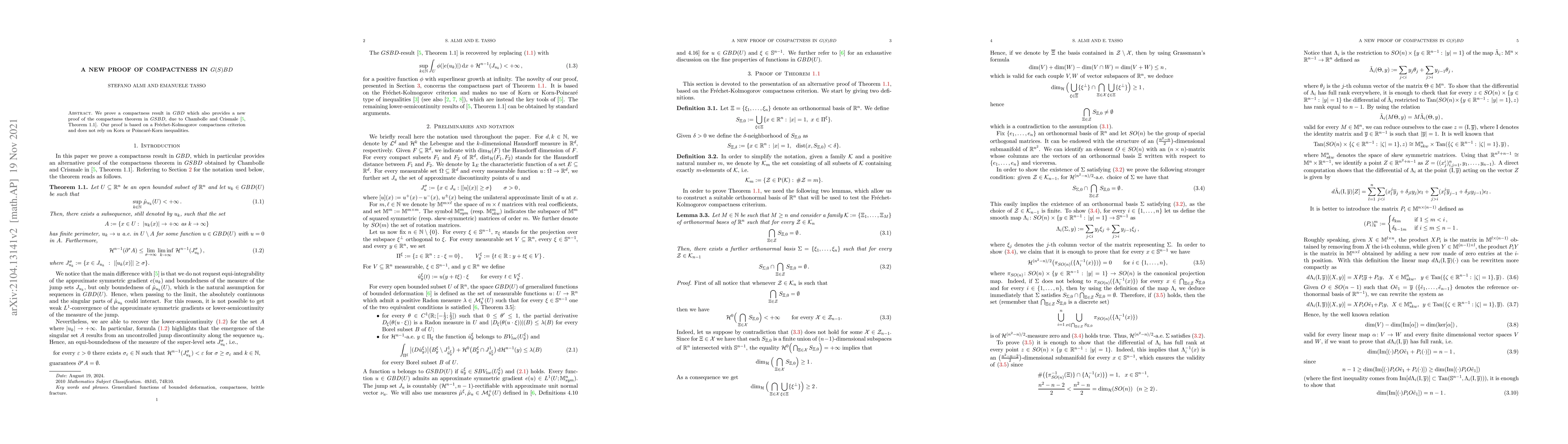 Researchers prove a compactness result in GBD without relying on Korn inequalities, providing a new proof of the compactness theorem in GSBD.