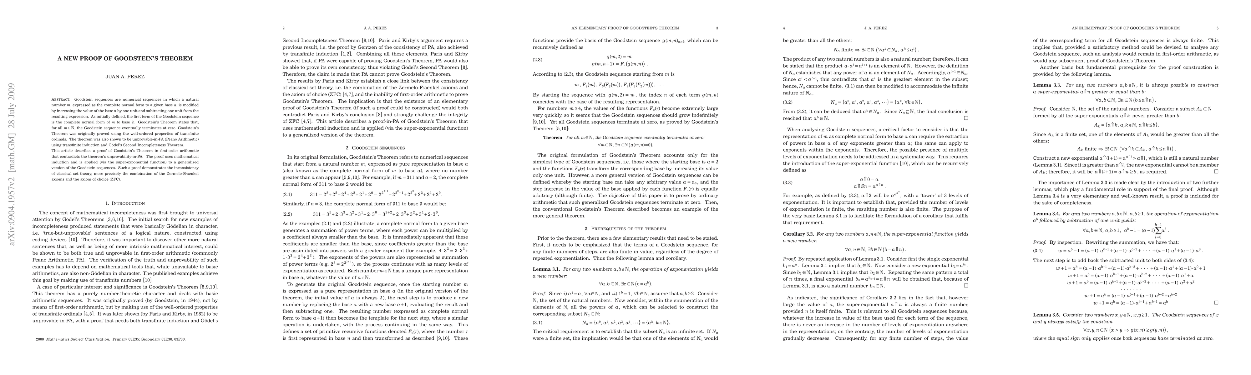 Goodstein sequences are numerical sequences in which a natural number m, expressed as the complete normal form to a given base a, is modified by increasing the value of the base a by one unit and subtracting one unit from the resulting expression. As initially defined, the first term of the Goodstein sequence is the complete normal form of m to base 2. Goodstein's Theorem states that, for all natural numbers, the Goodstein sequence eventually terminates at zero. Goodstein's Theorem was originally proved using the well-ordered properties of transfinite ordinals. The theorem was also shown to be unprovable-in-PA (Peano Arithmetic) using transfinite induction and Godel's Second Incompleteness Theorem. This article describes a proof of Goodstein's Theorem in first-order arithmetic that contradicts the theorem's unprovability-in-PA. The proof uses mathematical induction and is applied (via the super-exponential function) to a generalized version of the Goodstein sequences. Such a proof demonstrates the inconsistency of classical set theory, more precisely the combination of the Zermelo-Fraenkel axioms and the axiom of choice (ZFC).