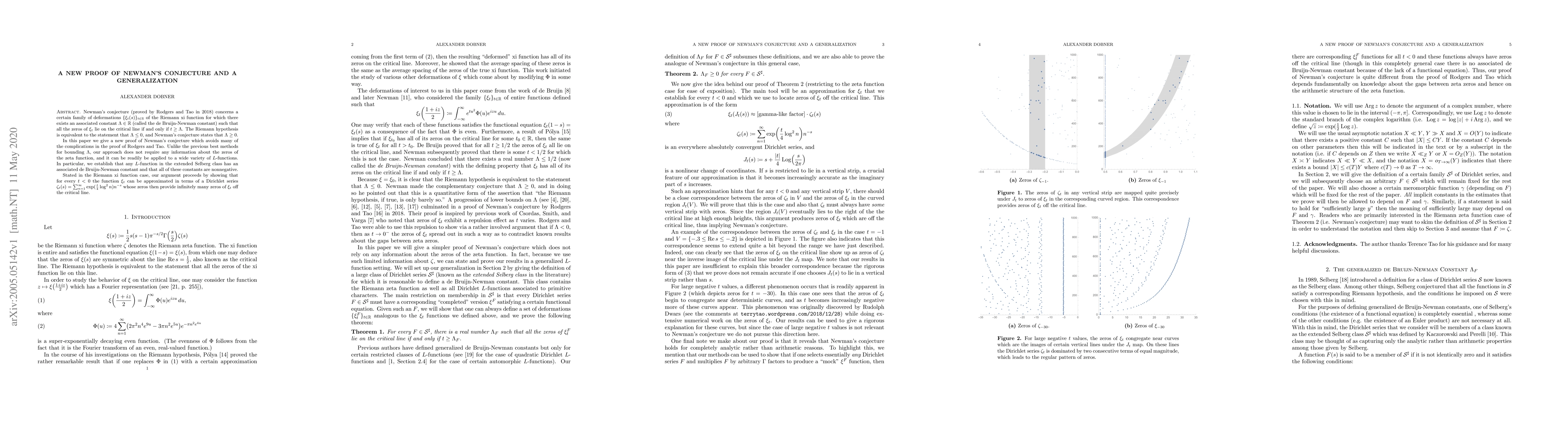 Newman's conjecture (proved by Rodgers and Tao in 2018) concerns a certain family of deformations $\{\xi_t(s)\}_{t \in \mathbb{R}}$ of the Riemann xi function for which there exists an associated constant $\Lambda \in \mathbb{R}$ (called the de Bruijn-Newman constant) such that all the zeros of $\xi_t$ lie on the critical line if and only if $t \geq \Lambda$. The Riemann hypothesis is equivalent to the statement that $\Lambda \leq 0$, and Newman's conjecture states that $\Lambda \geq 0$. In this paper we give a new proof of Newman's conjecture which avoids many of the complications in the proof of Rodgers and Tao. Unlike the previous best methods for bounding $\Lambda$, our approach does not require any information about the zeros of the zeta function, and it can be readily be applied to a wide variety of $L$-functions. In particular, we establish that any $L$-function in the extended Selberg class has an associated de Bruijn-Newman constant and that all of these constants are nonnegative. Stated in the Riemann xi function case, our argument proceeds by showing that for every $t < 0$ the function $\xi_t$ can be approximated in terms of a Dirichlet series $\zeta_t(s)=\sum_{n=1}^{\infty}\exp(\frac{t}{4} \log^2 n)n^{-s}$ whose zeros then provide infinitely many zeros of $\xi_t$ off the critical line.